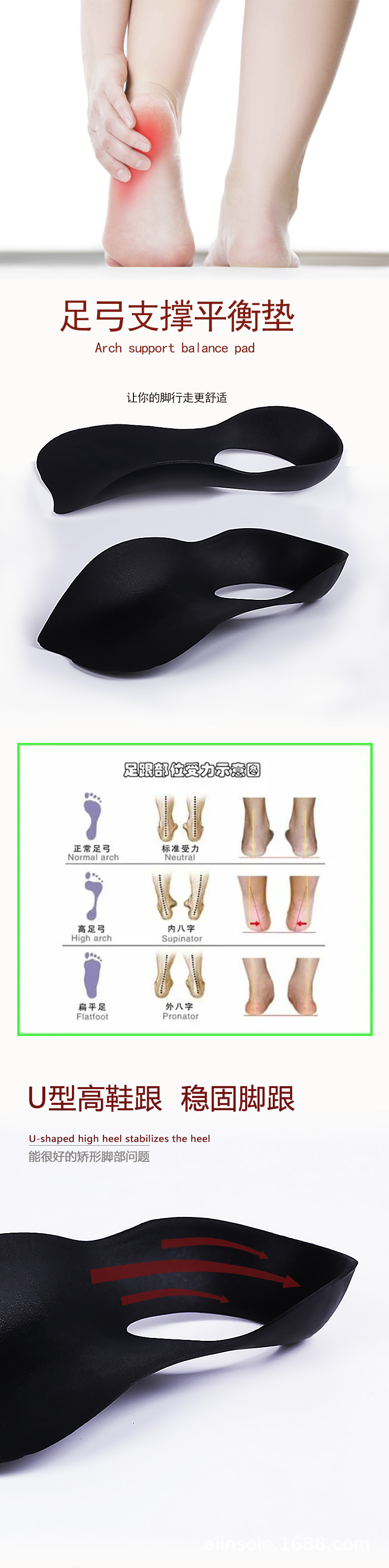扁平足专用矫正鞋垫男士女款足弓支撑平底足运动减震足外翻足弓垫