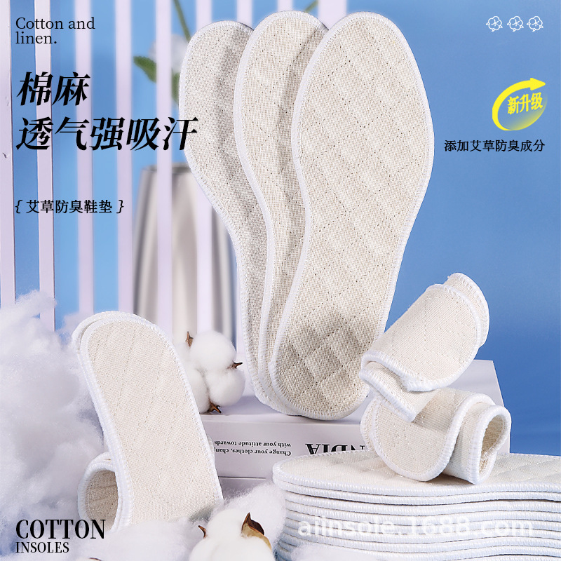 天然綿麻艾草布製インソール、防臭、男女兼用、吸汗、消臭、香り付きインソール、超ソフトインソール、在庫あり、卸売