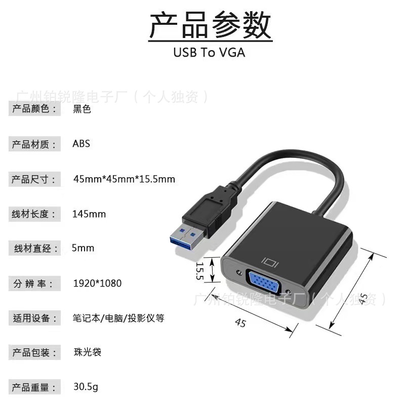 メーカー卸売りは多種のシステムと互換性があるUSB 3.0 TO VGA hdビデオ中継ケーブル