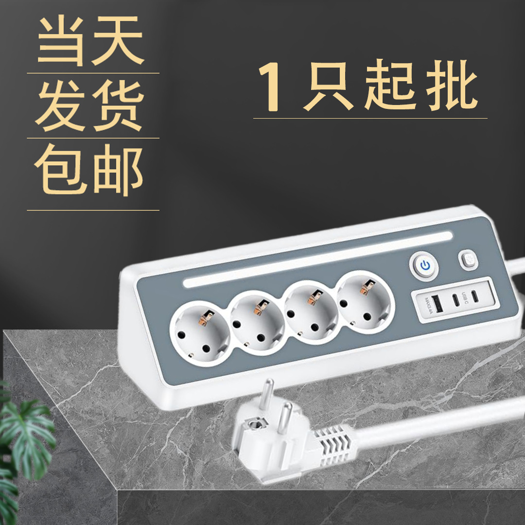 一只起售当天发货欧规插座带灯开关可控制带USB多插位阻燃排插