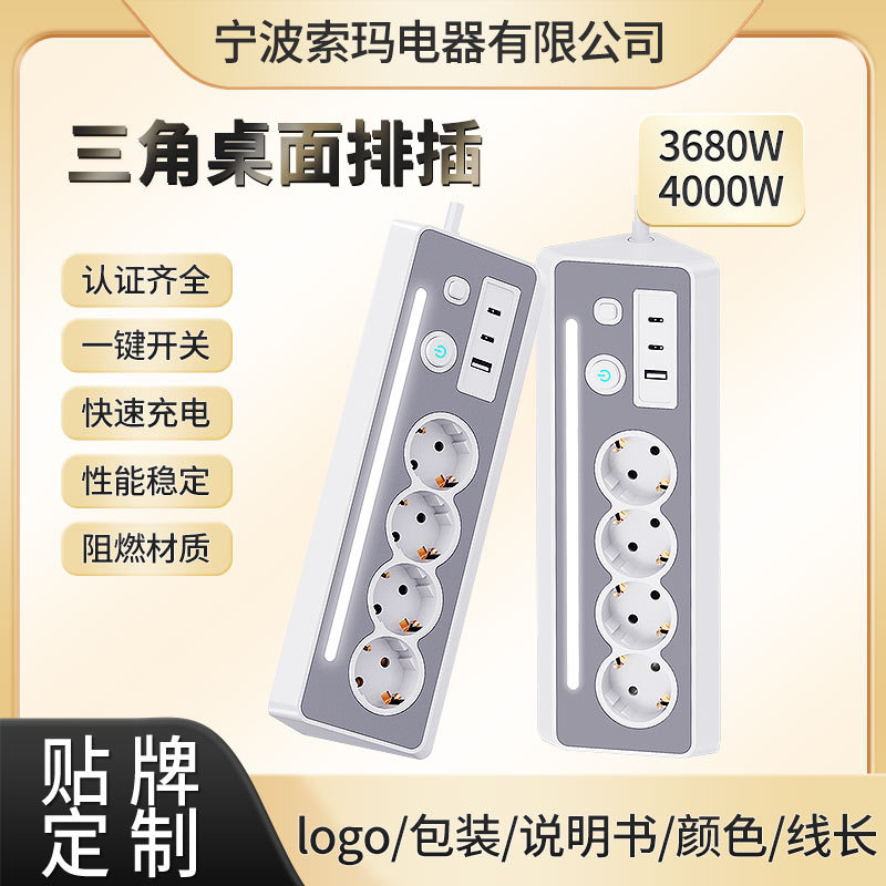 EU 三角形デスクトップソケットスイッチ付き LED ライトオプション PD30W ドイツロシア多機能電源タップ卸売