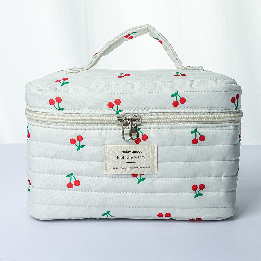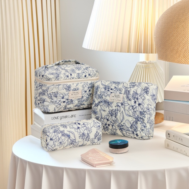 手持ち大容量化粧バッグ小砕花収納携帯キルティング綿布小清新化粧収納バッグ整理袋