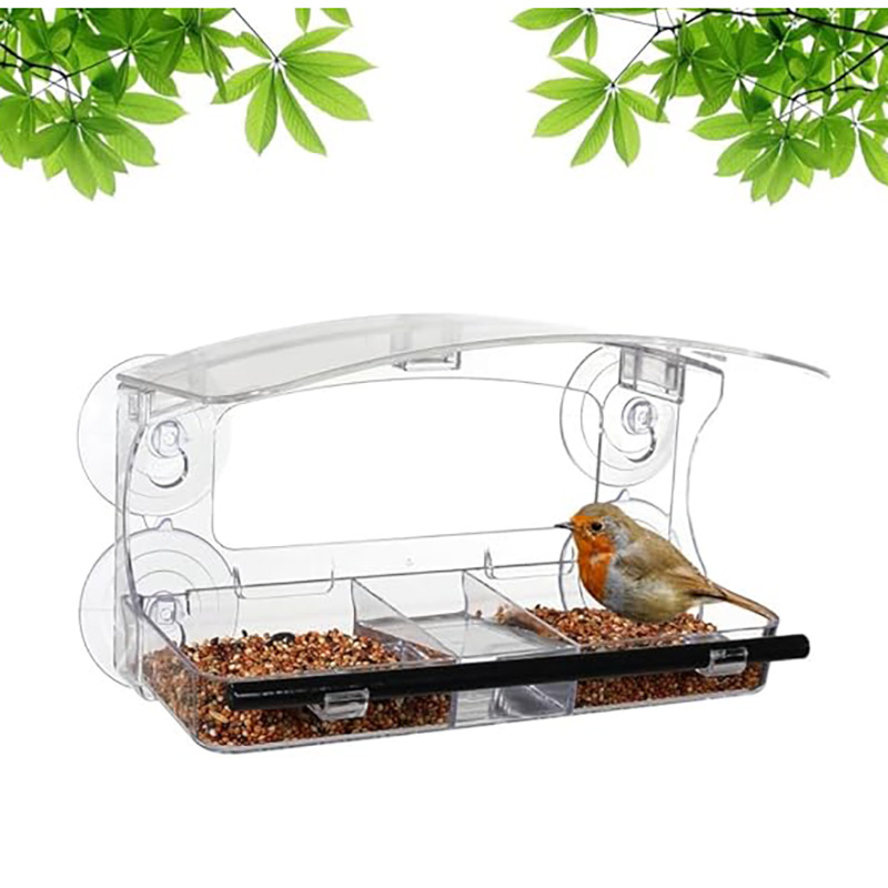 屋外で鳥に餌を与えるベランダの窓の外のビルは食器を投げるアクリルの小さい吸盤を食べます。