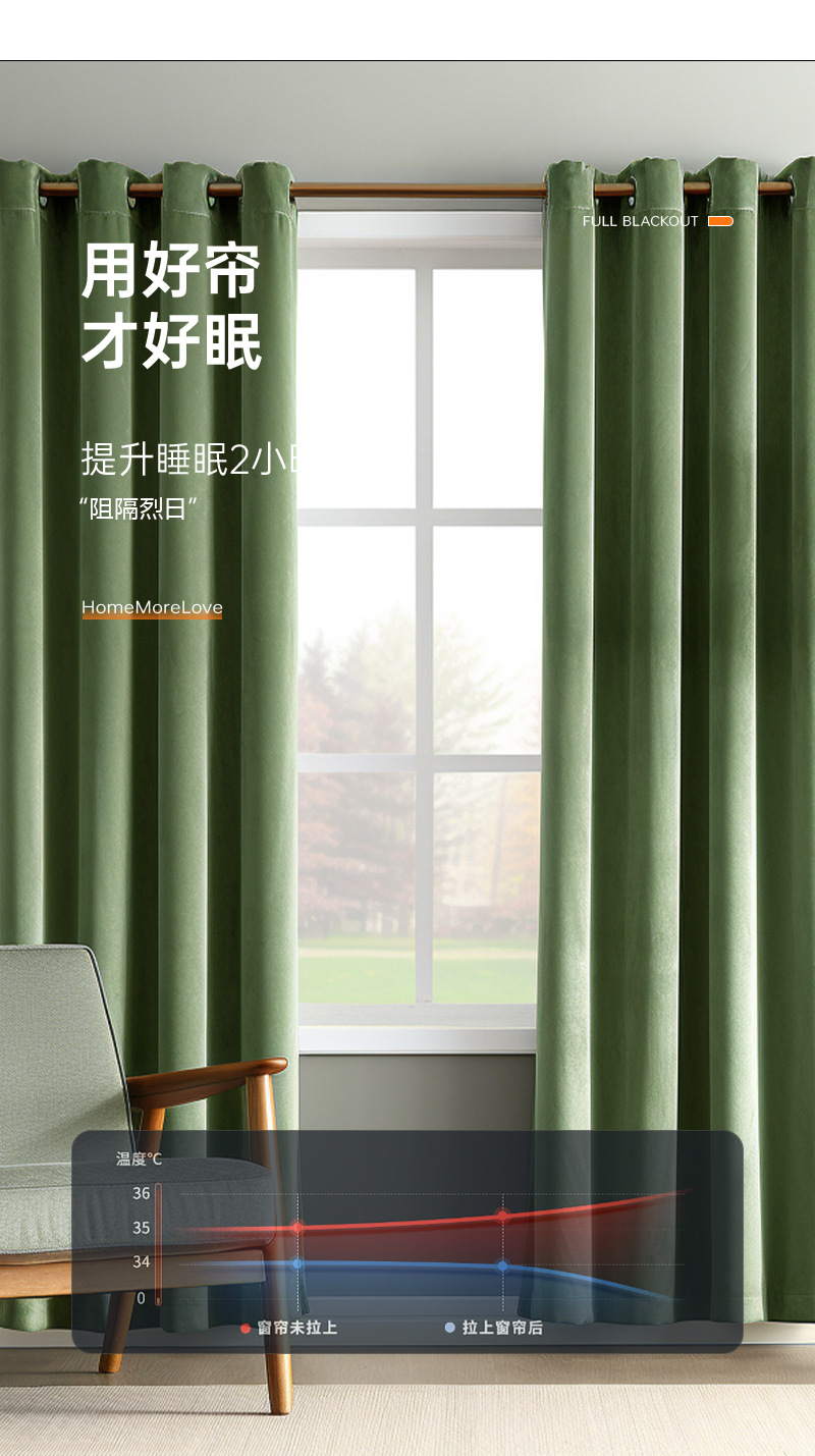 100%全遮光天鹅绒布卧室客厅遮光帘隔热窗帘