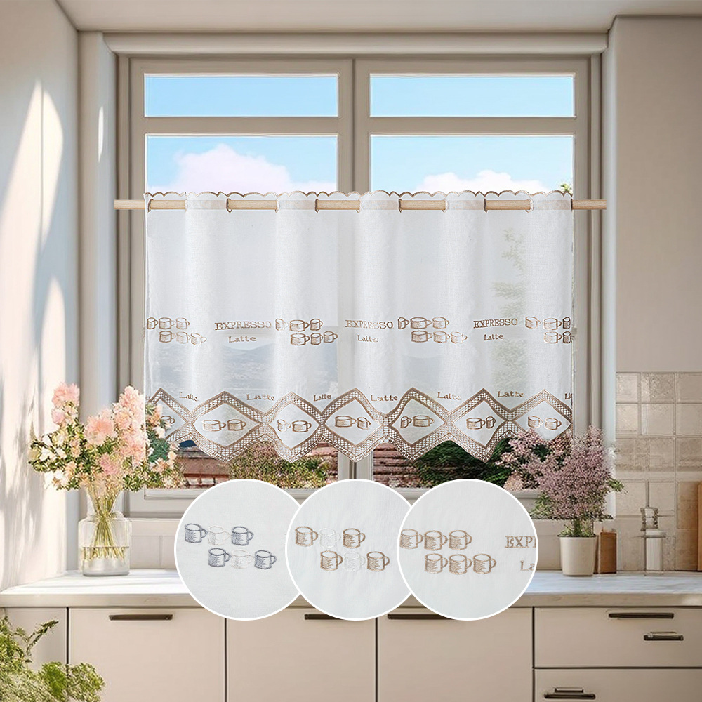 モダンなシンプルなコーヒーカップキッチンカーテン家庭用キッチンレストラン半遮光ガーゼ刺繍ショートカーテン