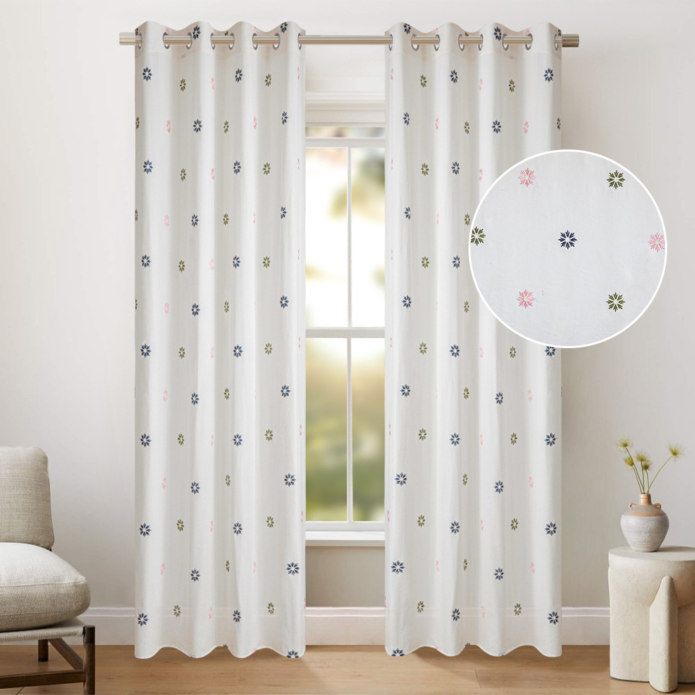 現代の2色の花の刺繍の窓の紗の田園の民宿の客間のベランダの装飾の紗のカーテンの小さい清新な風の布の芸の窓の紗