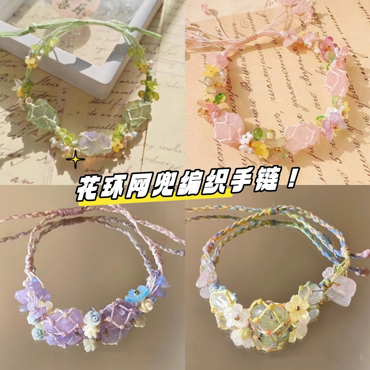 早春の花輪森系の新型天然水晶ブレスレットの手綱の爆発金は純粋な手編みの網兜ブレスレットです。
