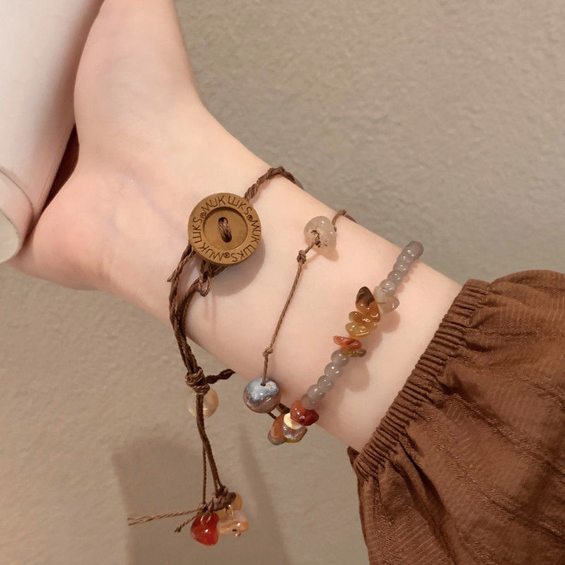 新しい中国式のレトロな畳は木製のボタンをつけてビーズのブレスレットを編んで、豪華な大衆の中国風秋冬の二重の手飾りを編みます。