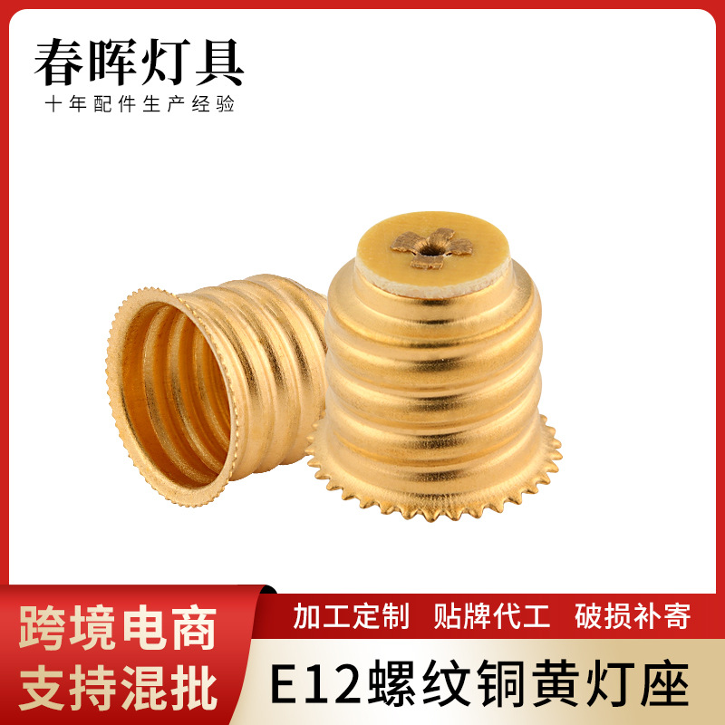 メーカー直供e 12ねじストレートレース銅黄ソケットねじソケット回転可能LED照明ソケットソケットソケット