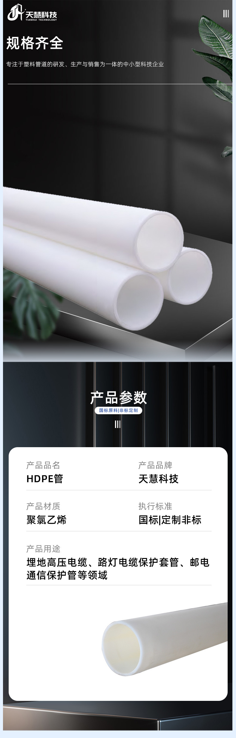 雄塑HDPE电力管顶管白色实壁管穿线管拖拉管通信管电缆保护套pe管