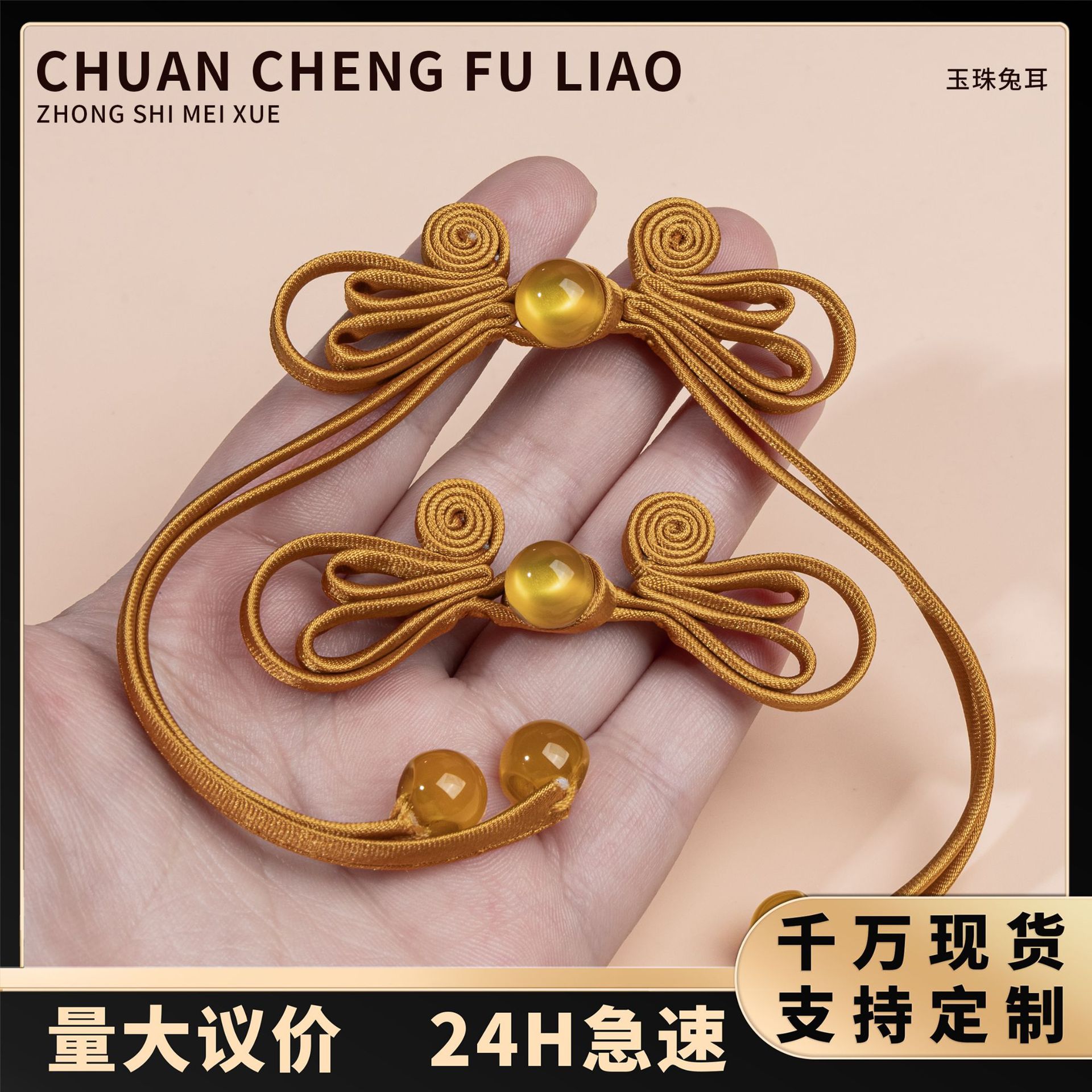 旗袍盘扣长尾玉珠兔耳国风中式手工编织纽扣汉服装饰对扣玉兔扣子