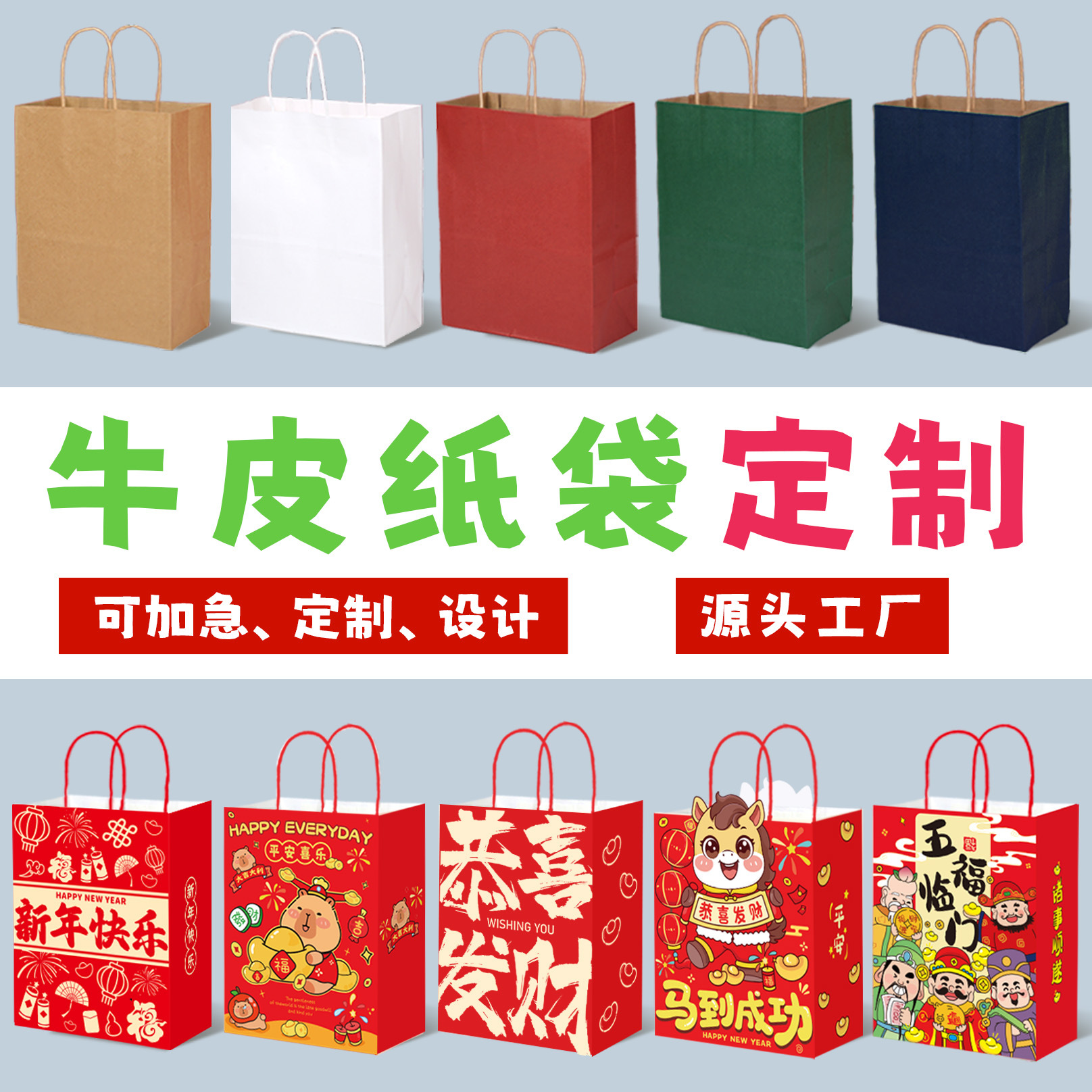 牛皮纸袋现货马年礼品纸袋伴手礼手提袋子定制烘焙咖啡外卖打包袋