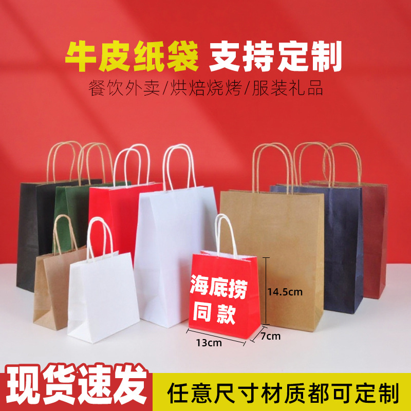 牛皮纸手提袋奶茶外卖打包袋礼品包装纸袋伴手礼袋批发定制印logo