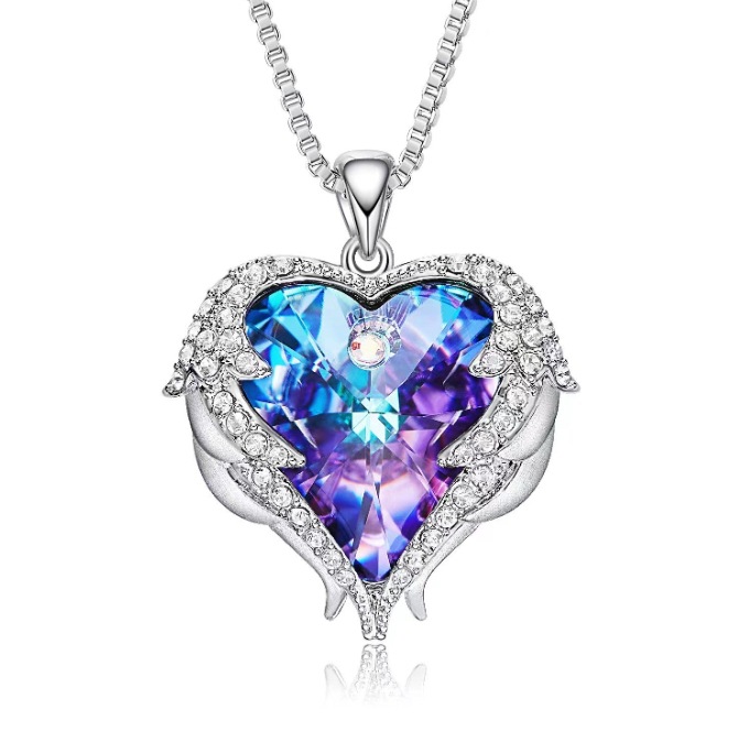 国境を越えた欧米の起爆ジュエリー海洋の心のネックレス女性天使翼水晶鎖鎖ネックレス卸売り