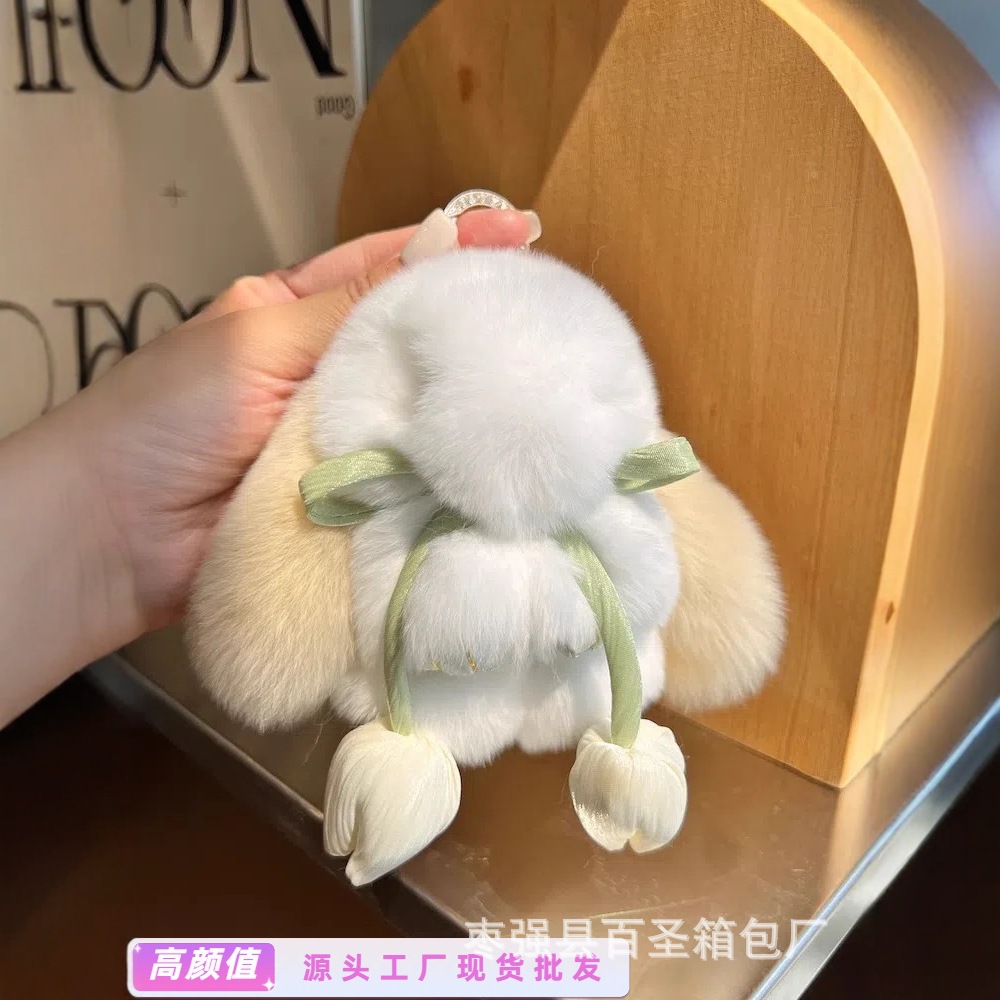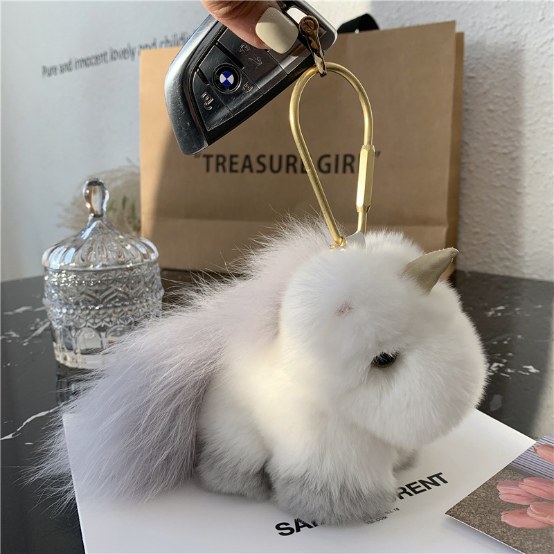 本物のかわいいレッキスウサギの毛皮人形バニー車のキーホルダーペンダントぬいぐるみバッチ人形衣装デッドペンダントウサギ