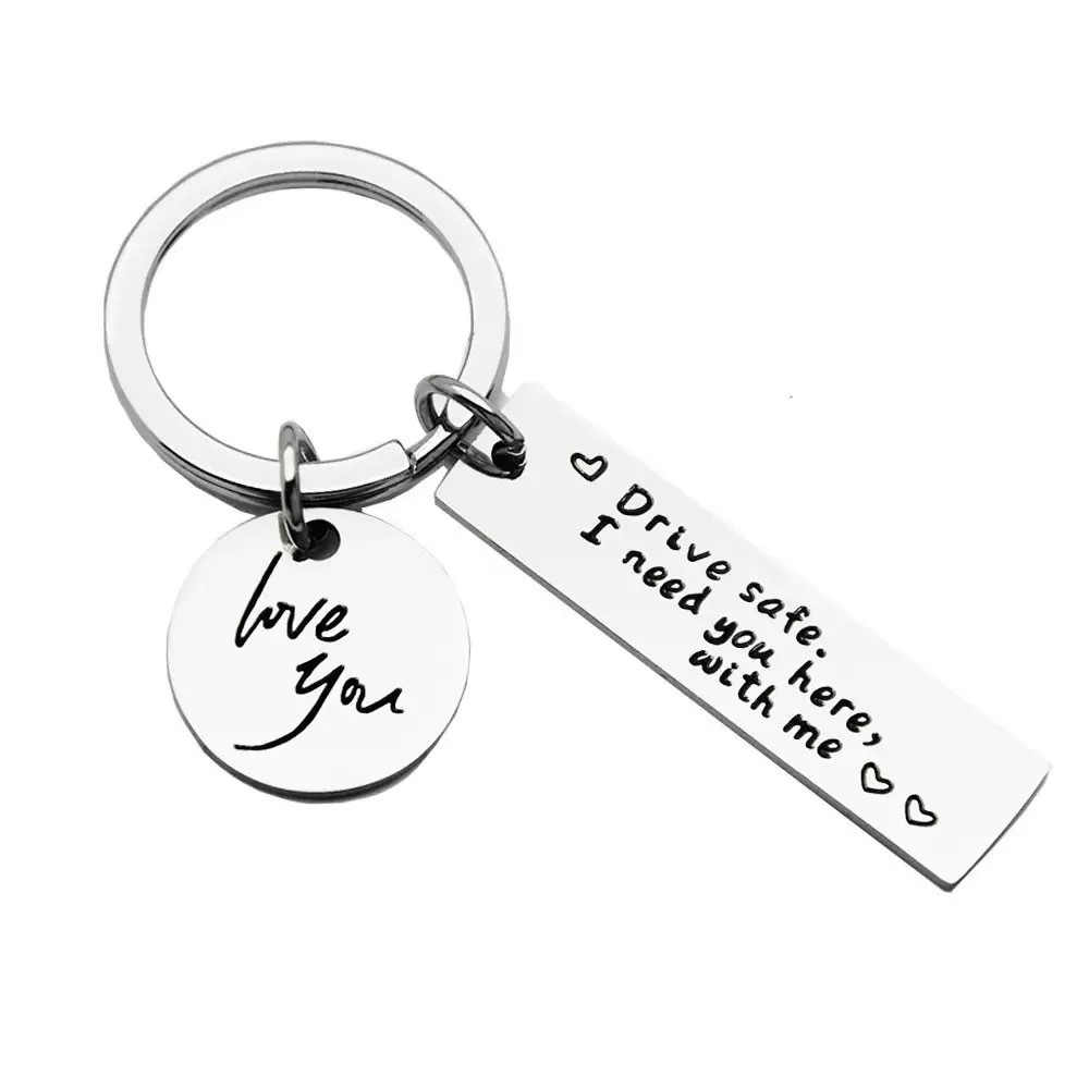 クロスボーダーdrive safe i needyou here with meよく運転するステンレスキーホルダー