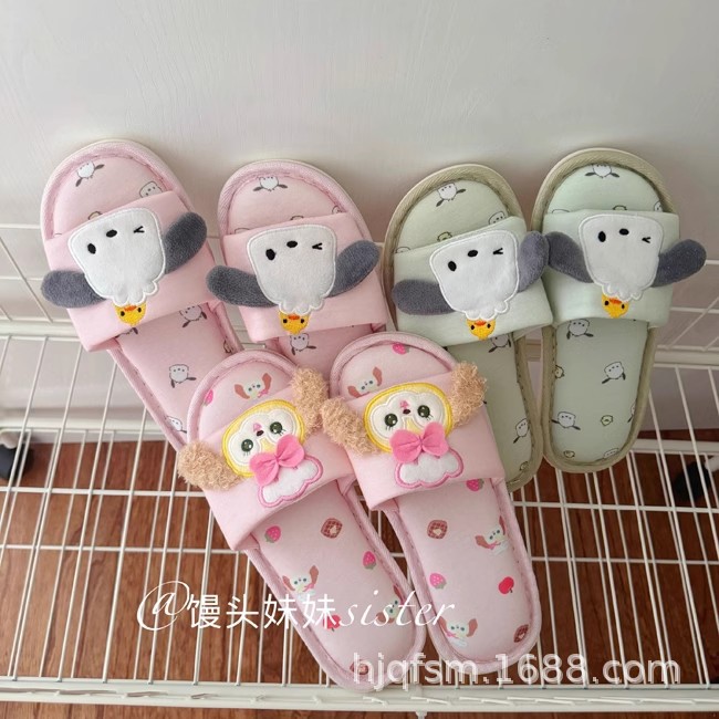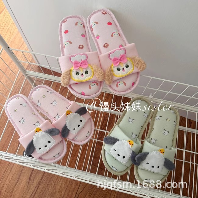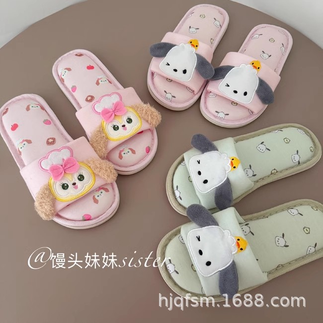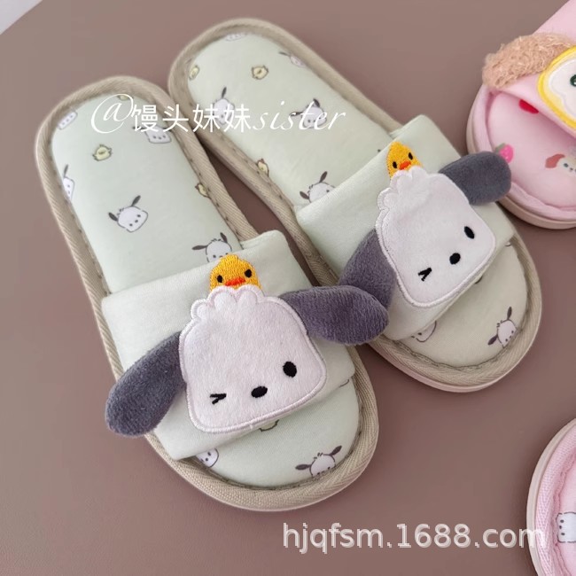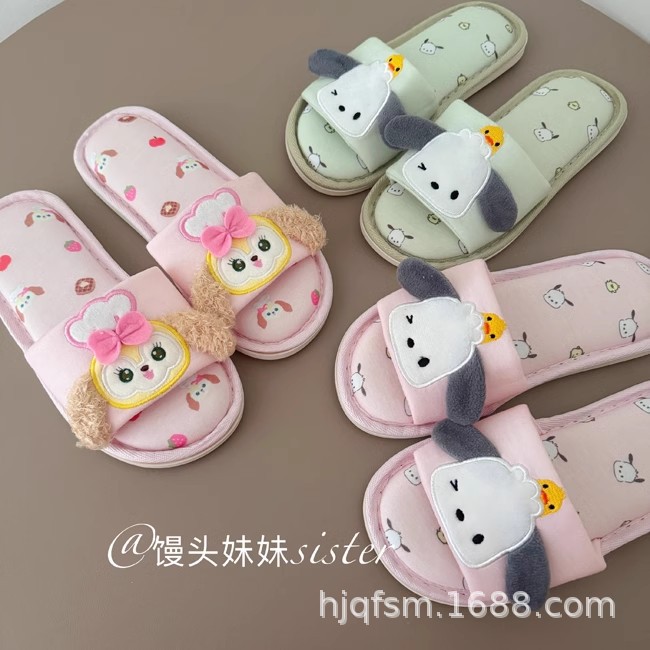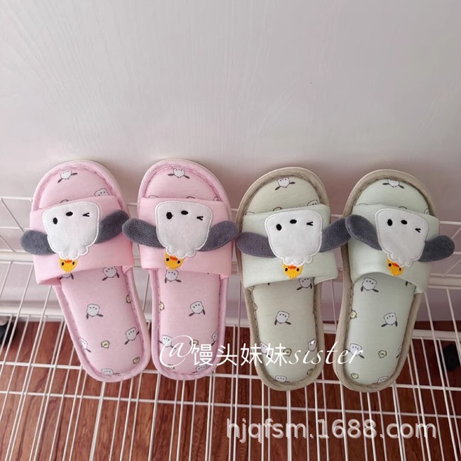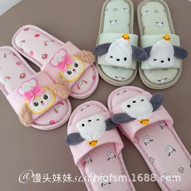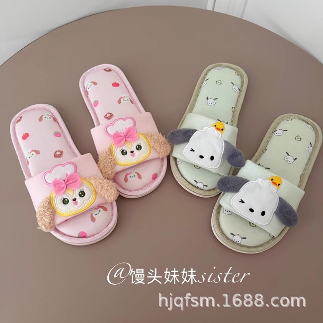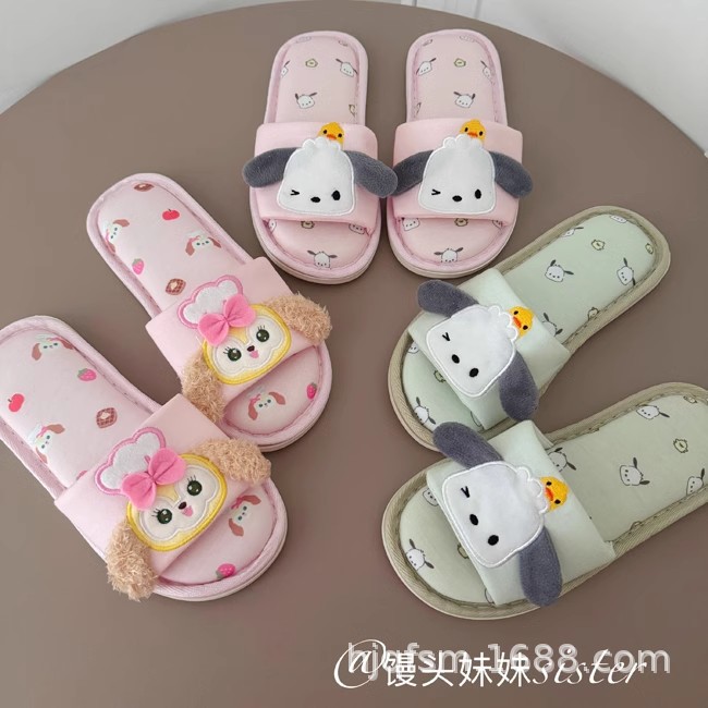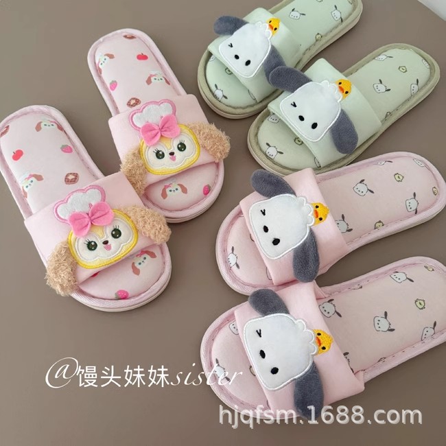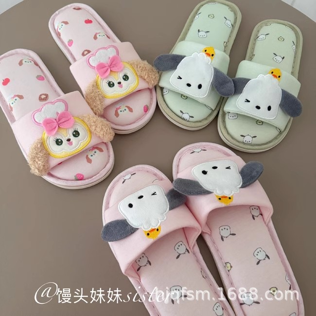 春の夏のかわいい漫画のコックの犬のPCの女性のぬいぐるみの口のスリッパの家庭の室内の床の露指の冷たいスリッパ