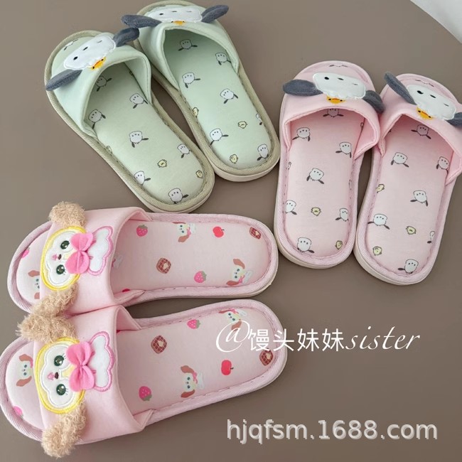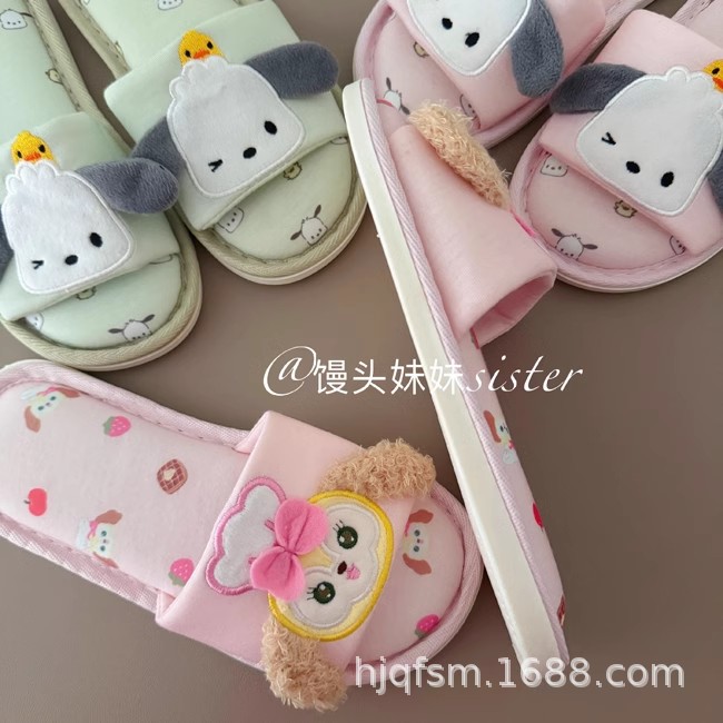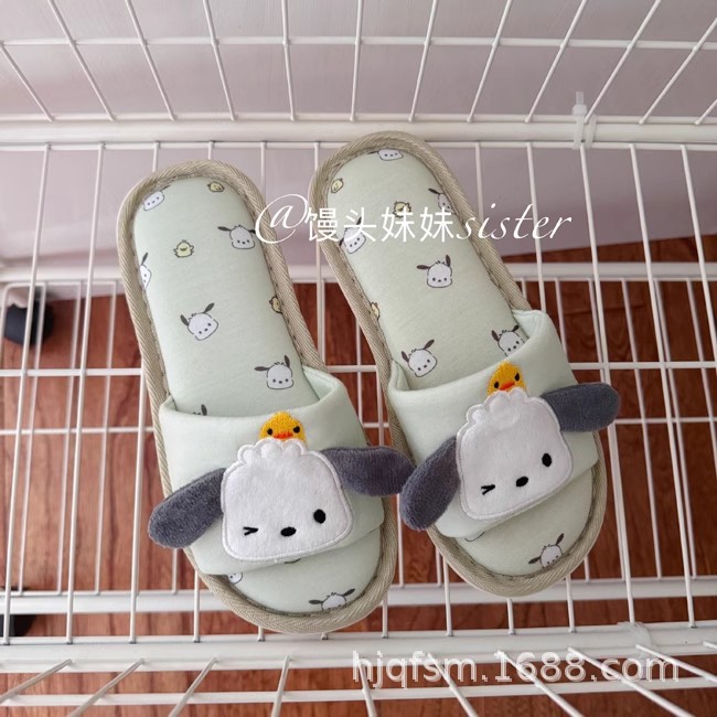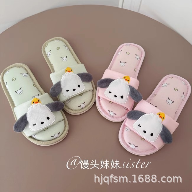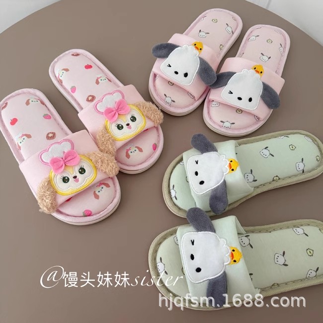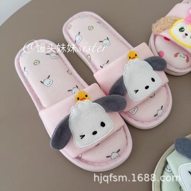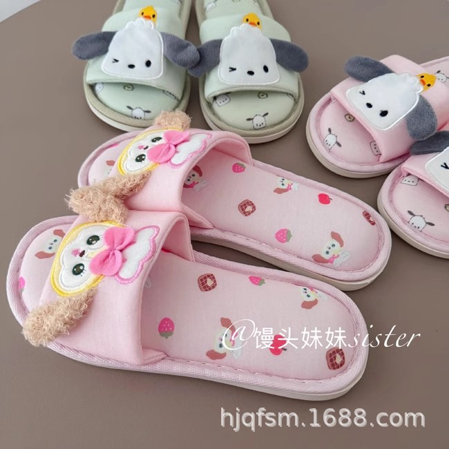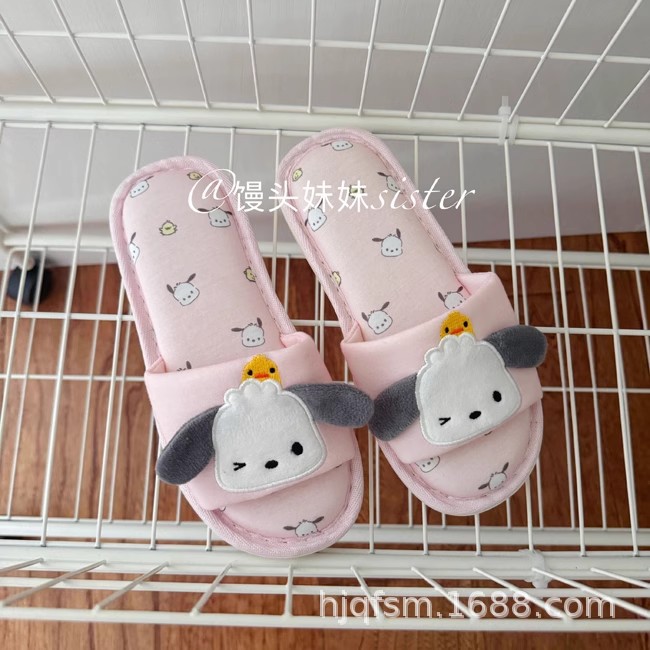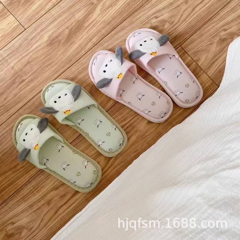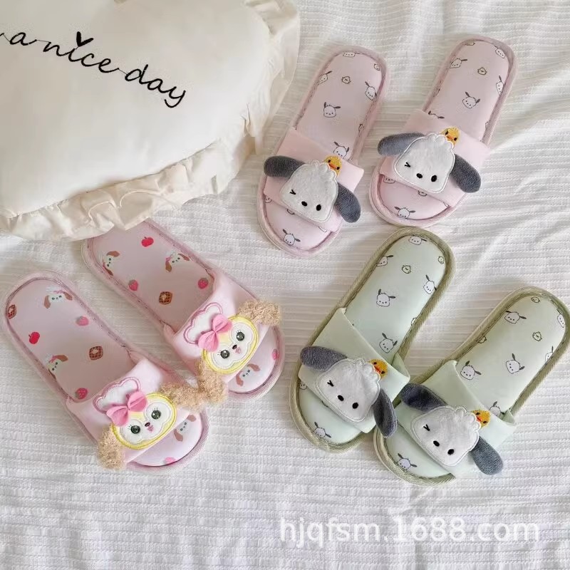 春の夏のかわいい漫画のコックの犬のPCの女性のぬいぐるみの口のスリッパの家庭の室内の床の露指の冷たいスリッパ