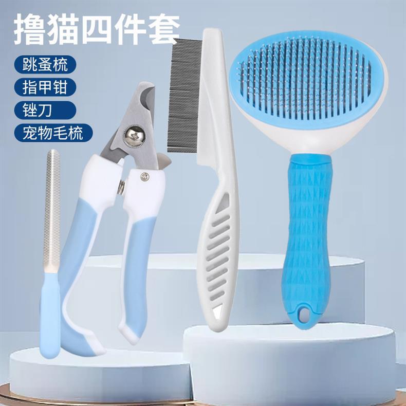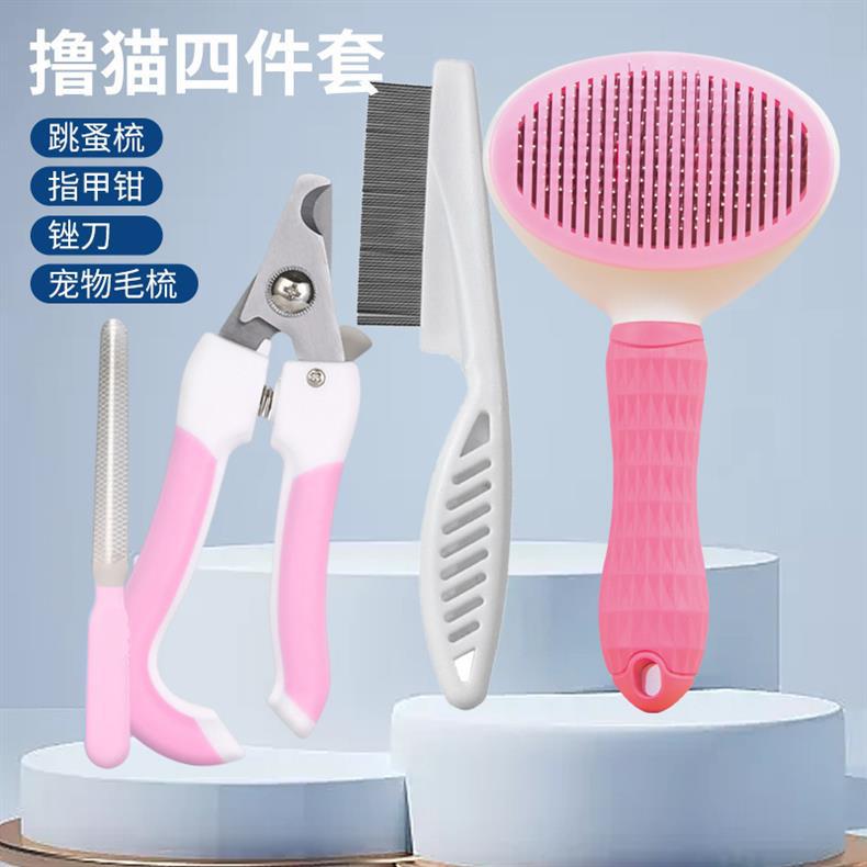 ペット櫛犬櫛自潔櫛猫櫛猫用浮毛自動脱毛櫛ハサミ4点セット