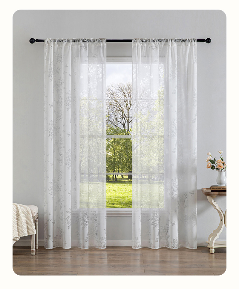 フランス式の小さい花の刺繍の窓の紗の寝室の客間は床に落ちて窓の紗の純色を飾ります。