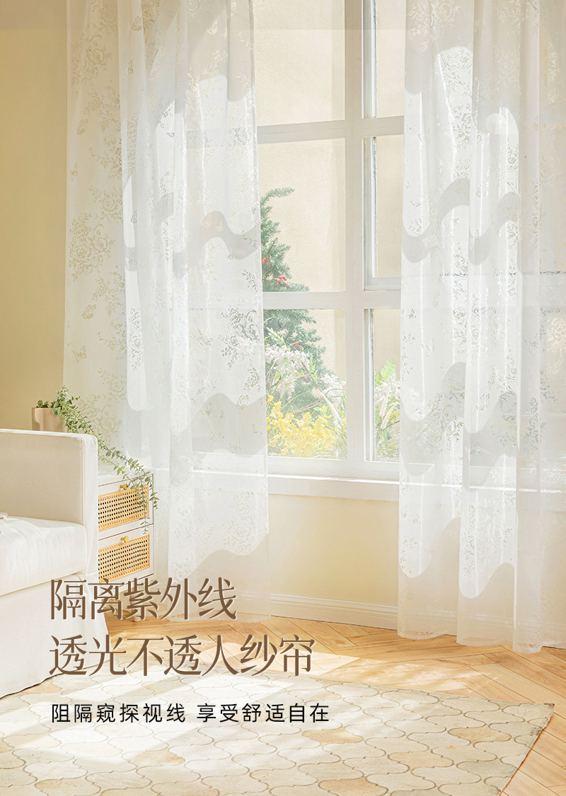 フランス多色雪花刺繍カーテン軽贅沢現代クリーム風客間寝室半遮光国境を越えた窓糸完成品