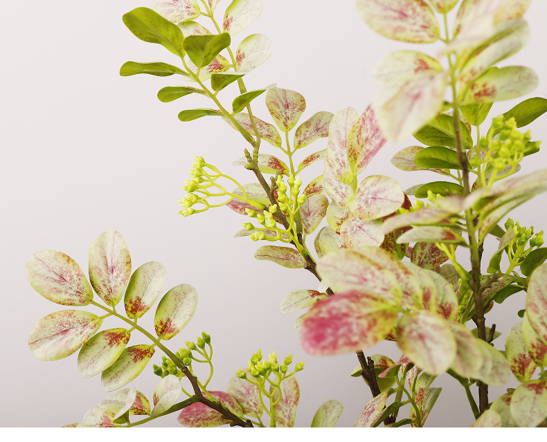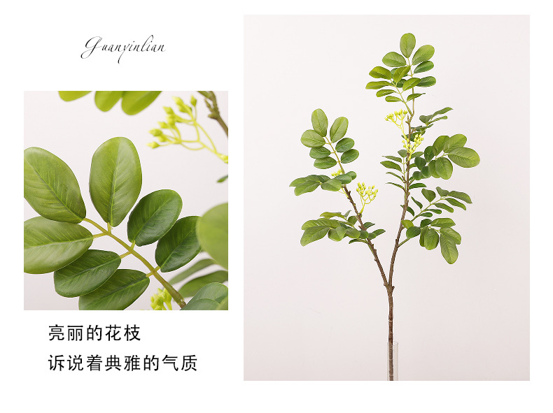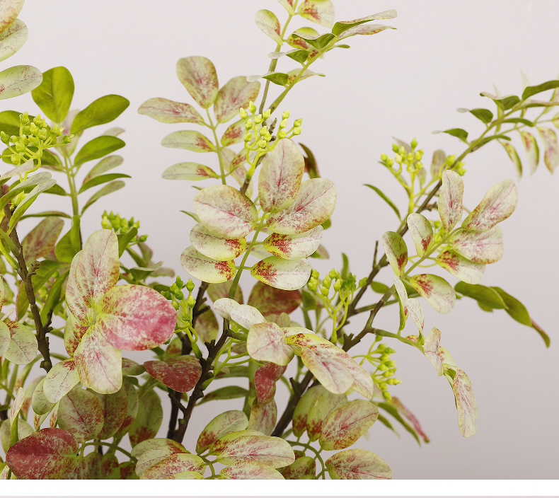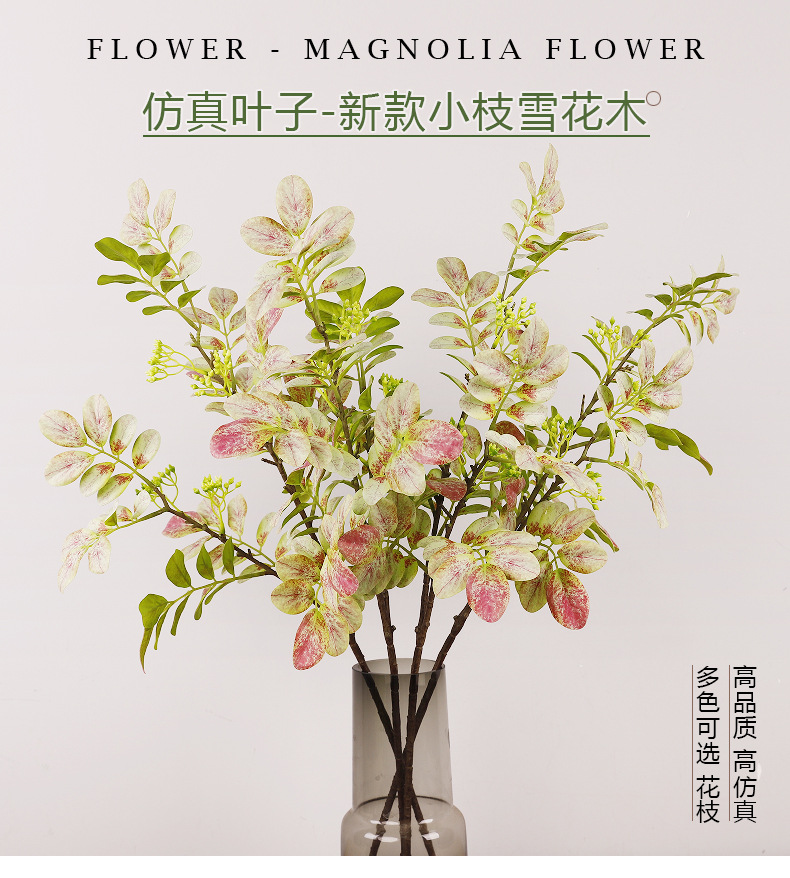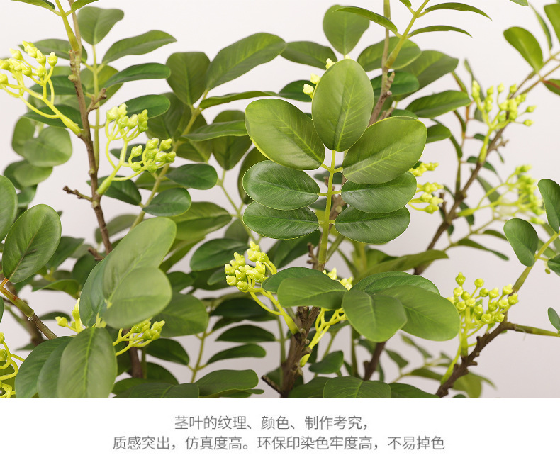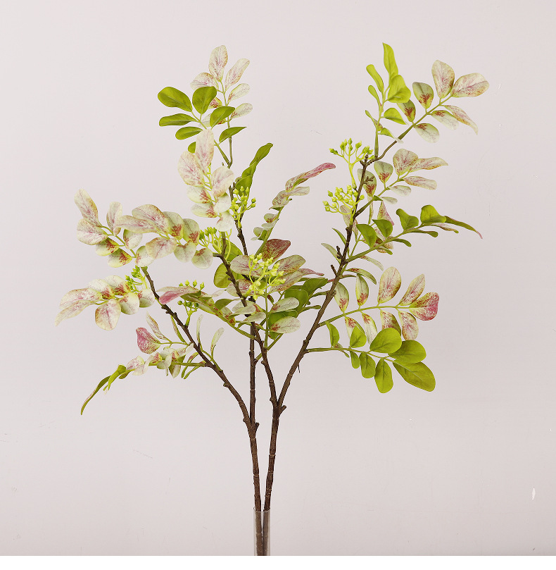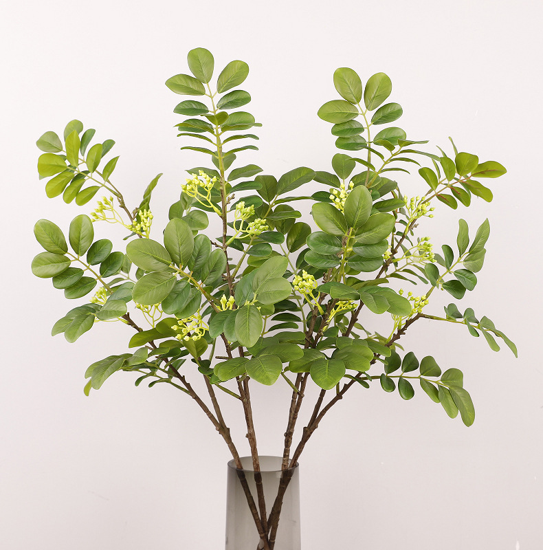 卸売人工緑植物スノーフレークツリーの枝葉、果実付き槐の葉、室内ウェディング装飾、高級感