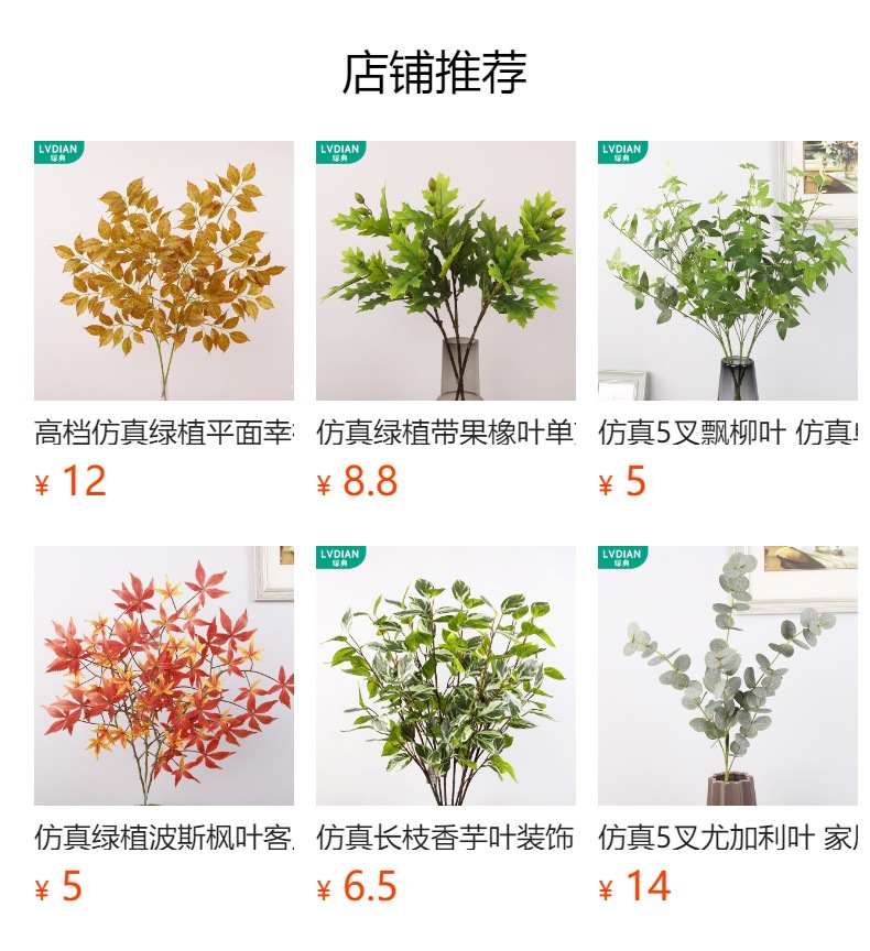 人工葉植物プラスチック製フェイクグリーン人工葉フラワーアレンジメント鉢植えグリーンロウ北欧風人工グリーン卸売