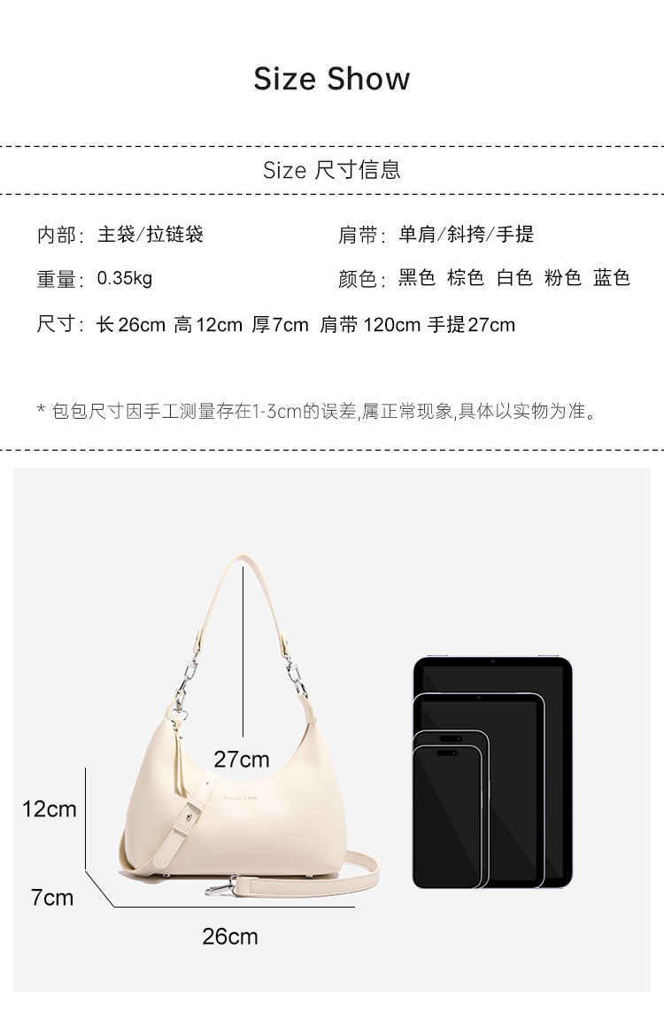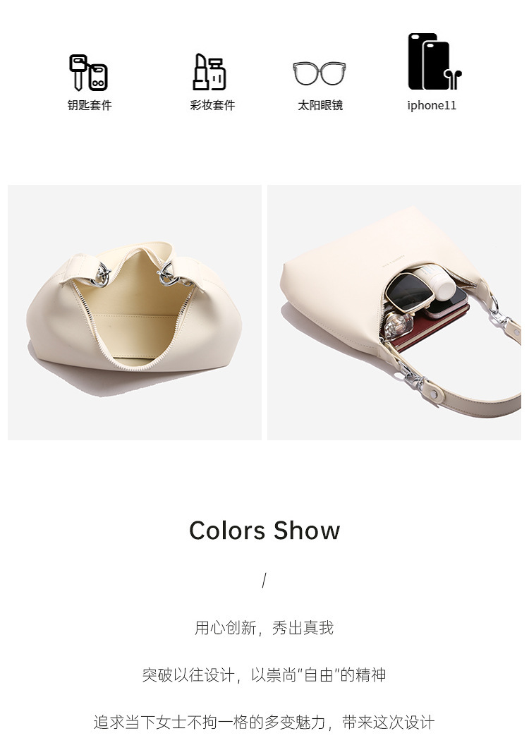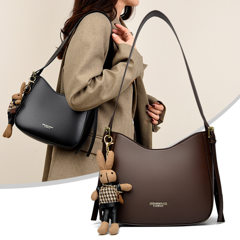 韓国系の高級な質感の包みの女性の2024秋の新商品のファッションの百合のシンプルな肩の脇の下の包みの新月の包みの女性