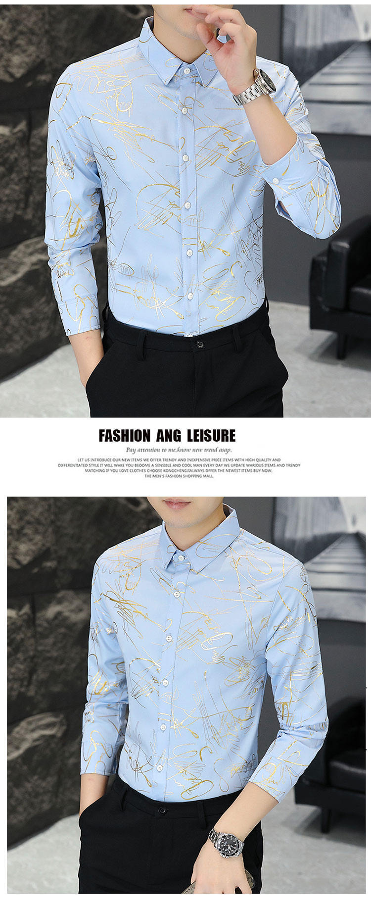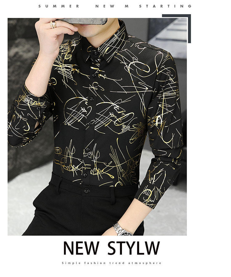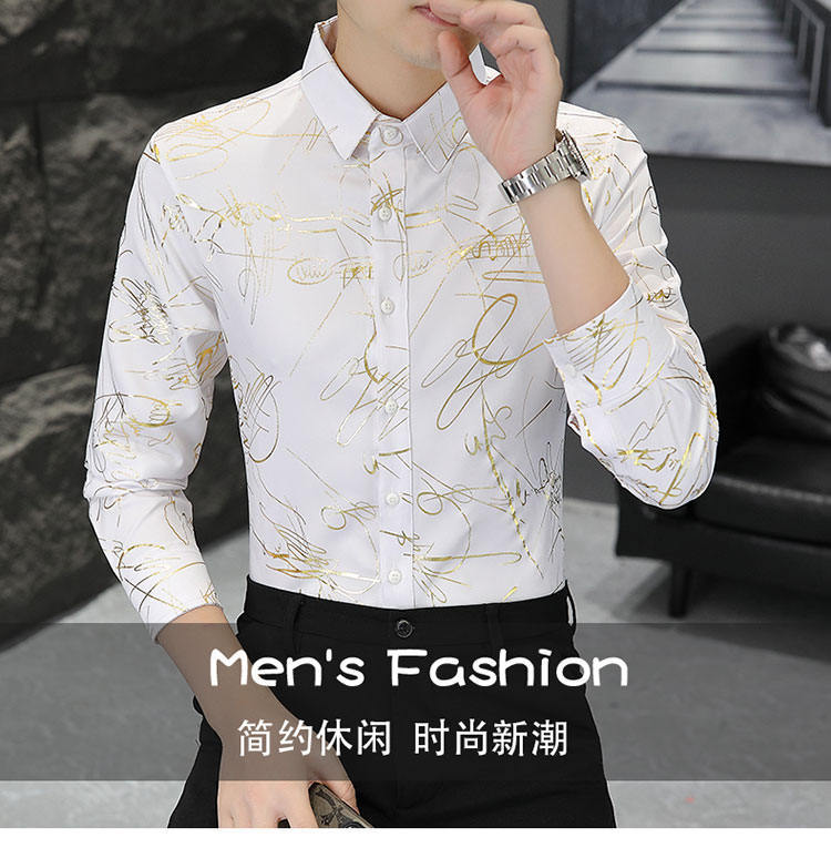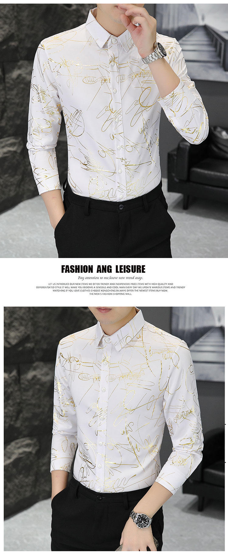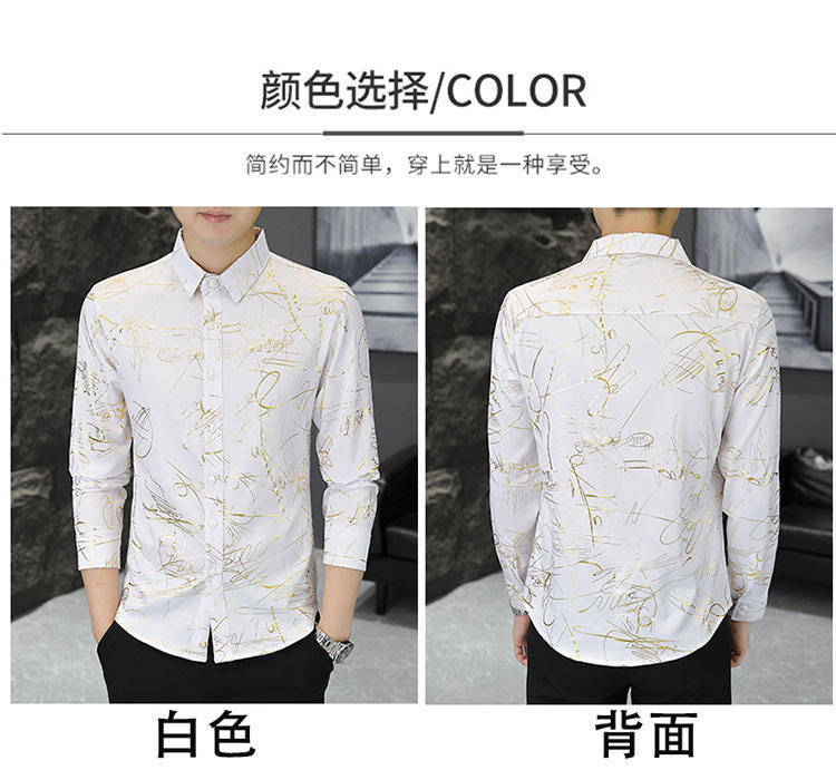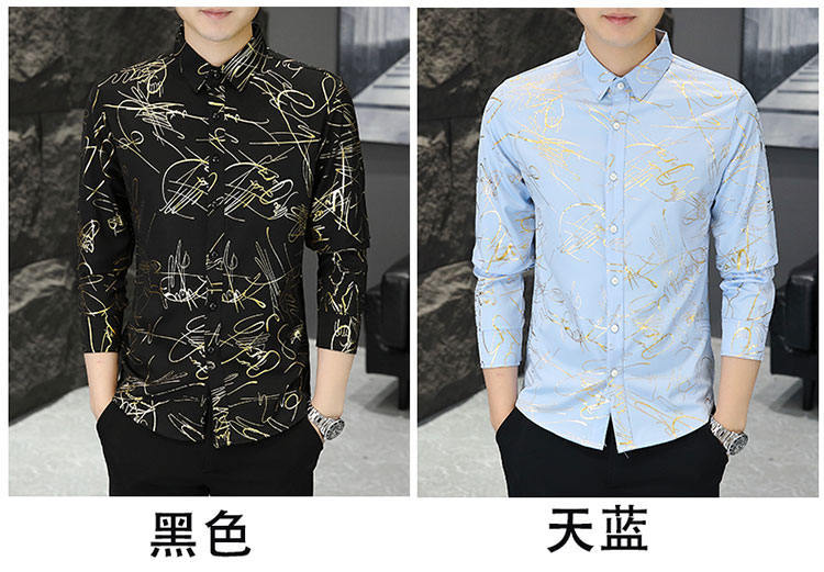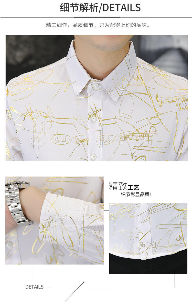 2024無限界中袖シャツ男性箔押しプリント中袖イケメン長年の商品提案主押し0604