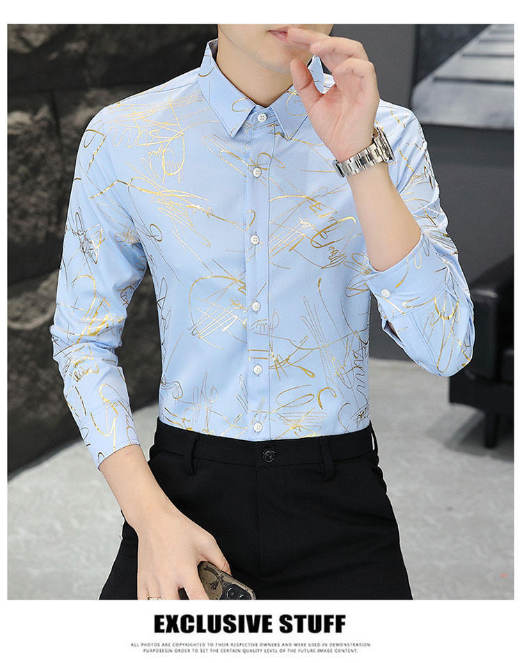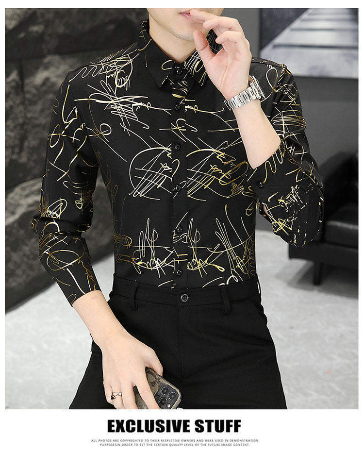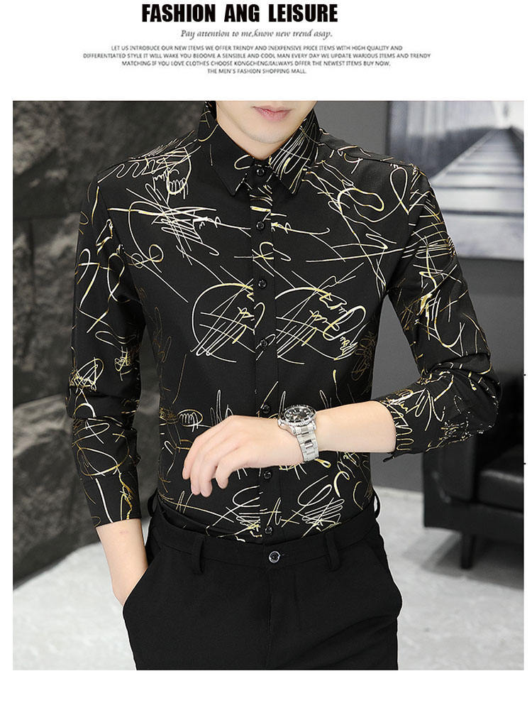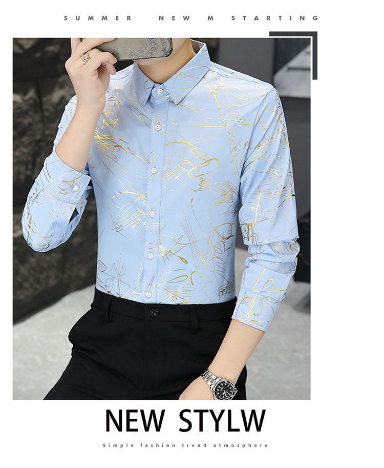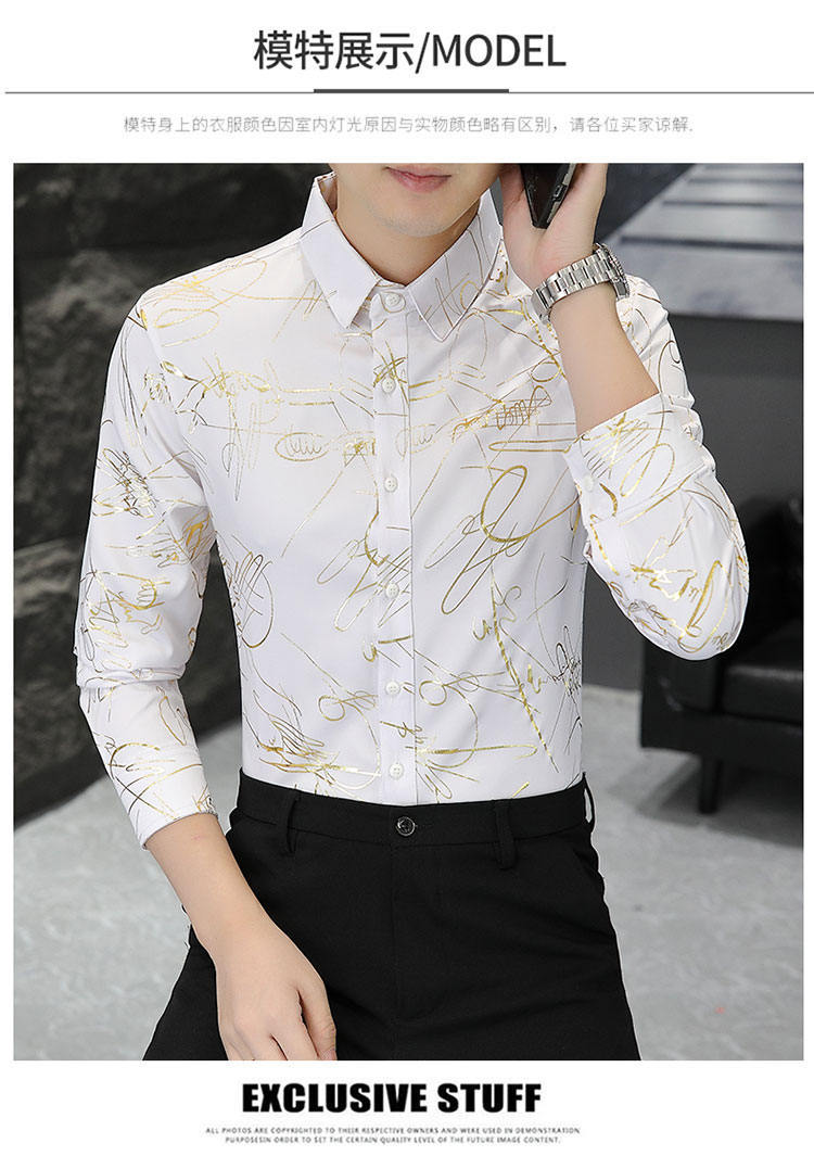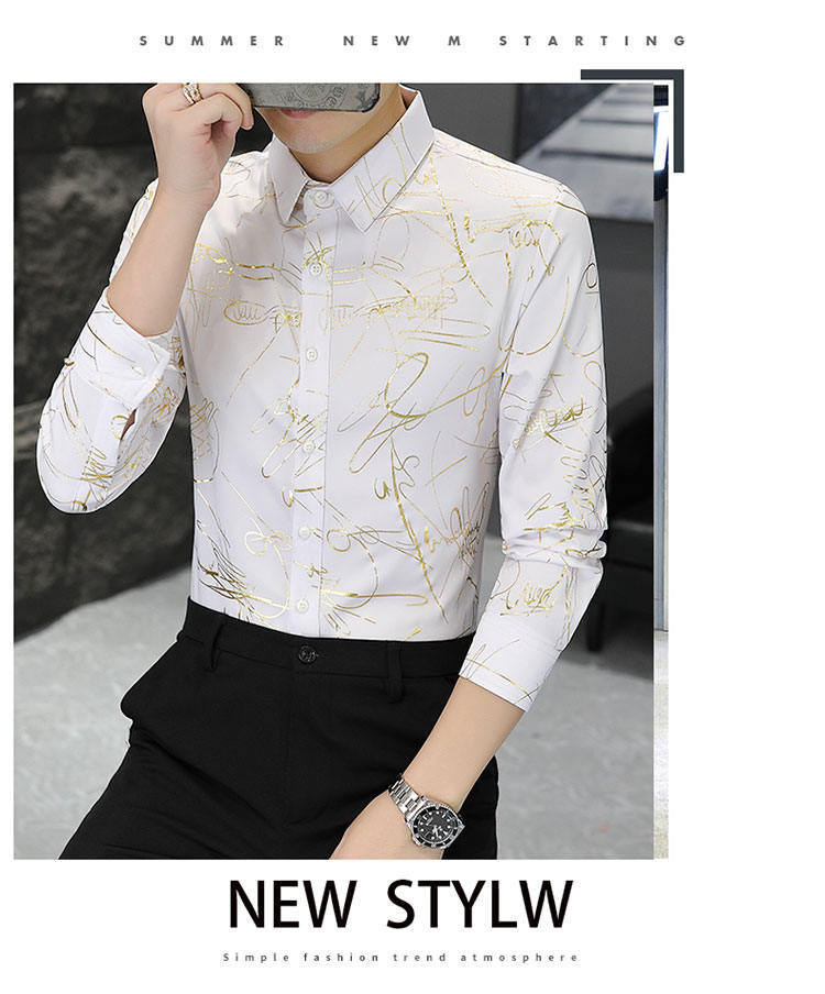 2024無限界中袖シャツ男性箔押しプリント中袖イケメン長年の商品提案主押し0604