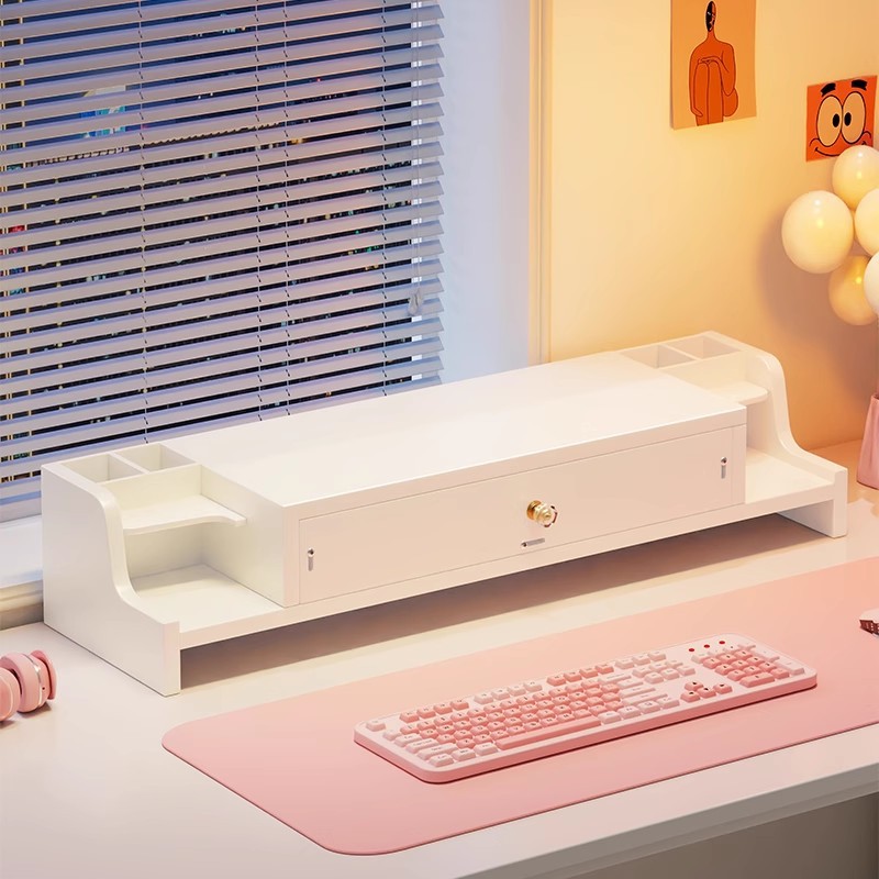 引き出し付きコンピュータ高架オフィスデスクトップ収納ラックデスクトップモニターサポートラックガールズワークステーションアーティファクト