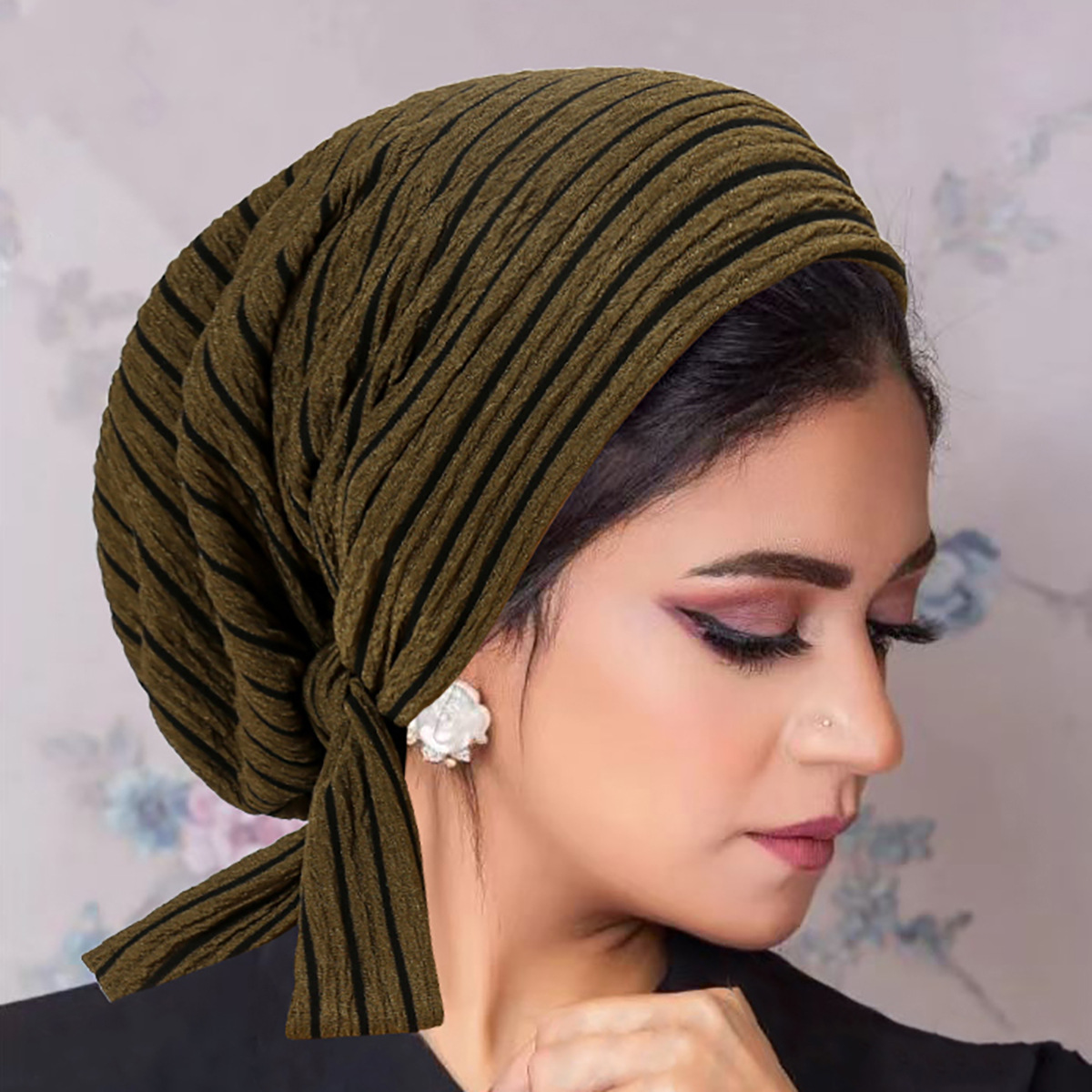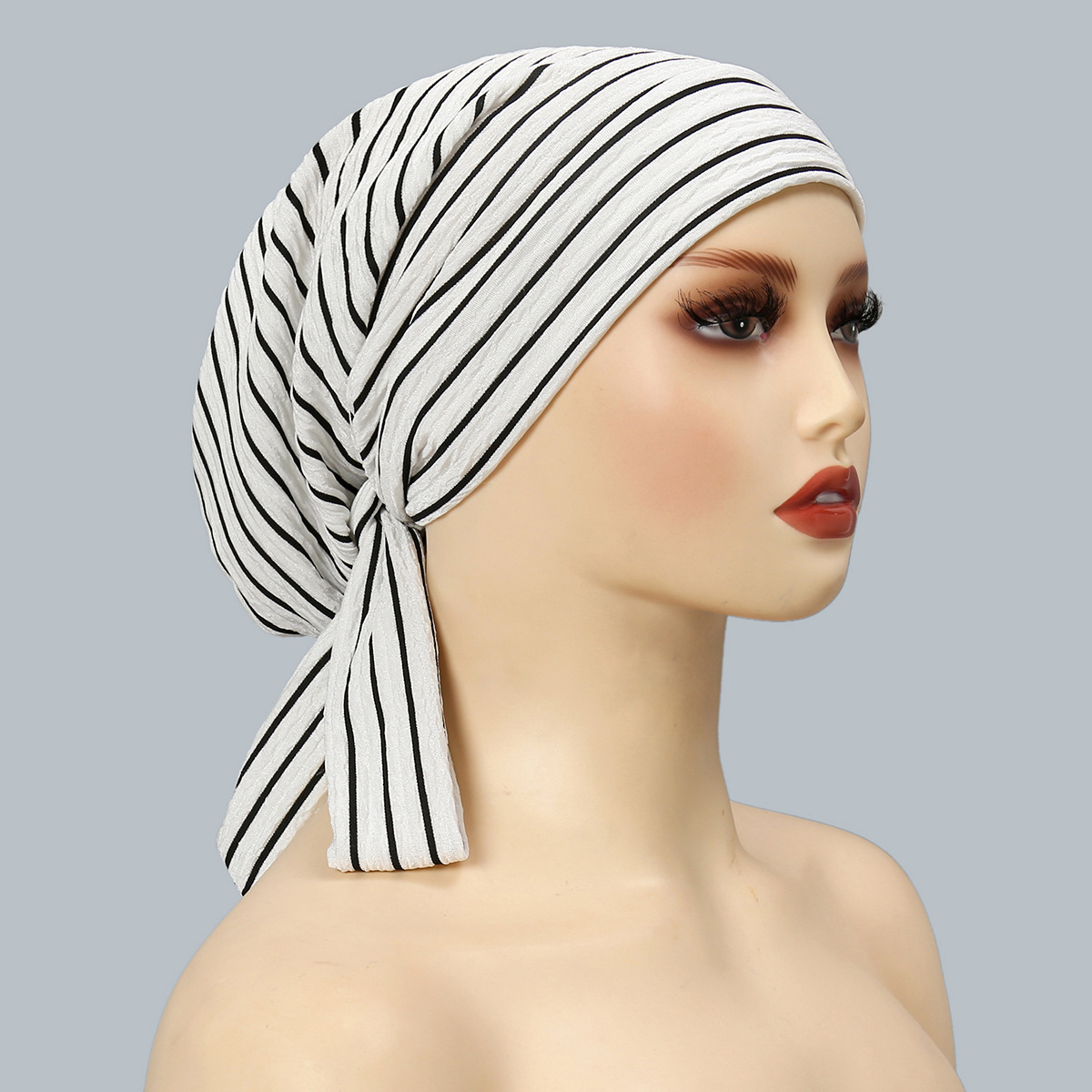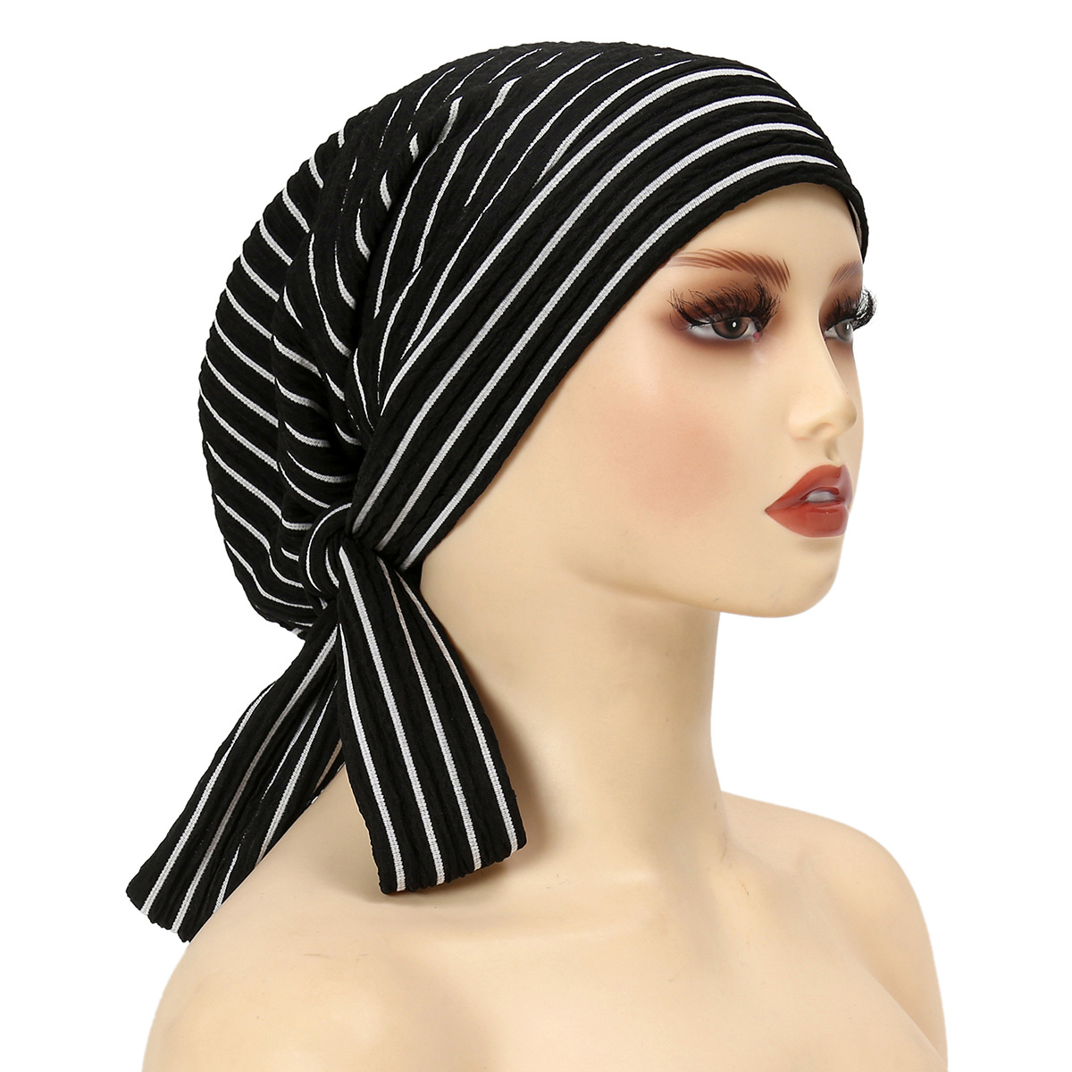 跨境新款珠条纹理褶皱包头帽女士透气舒适头巾帽日常简约搭配