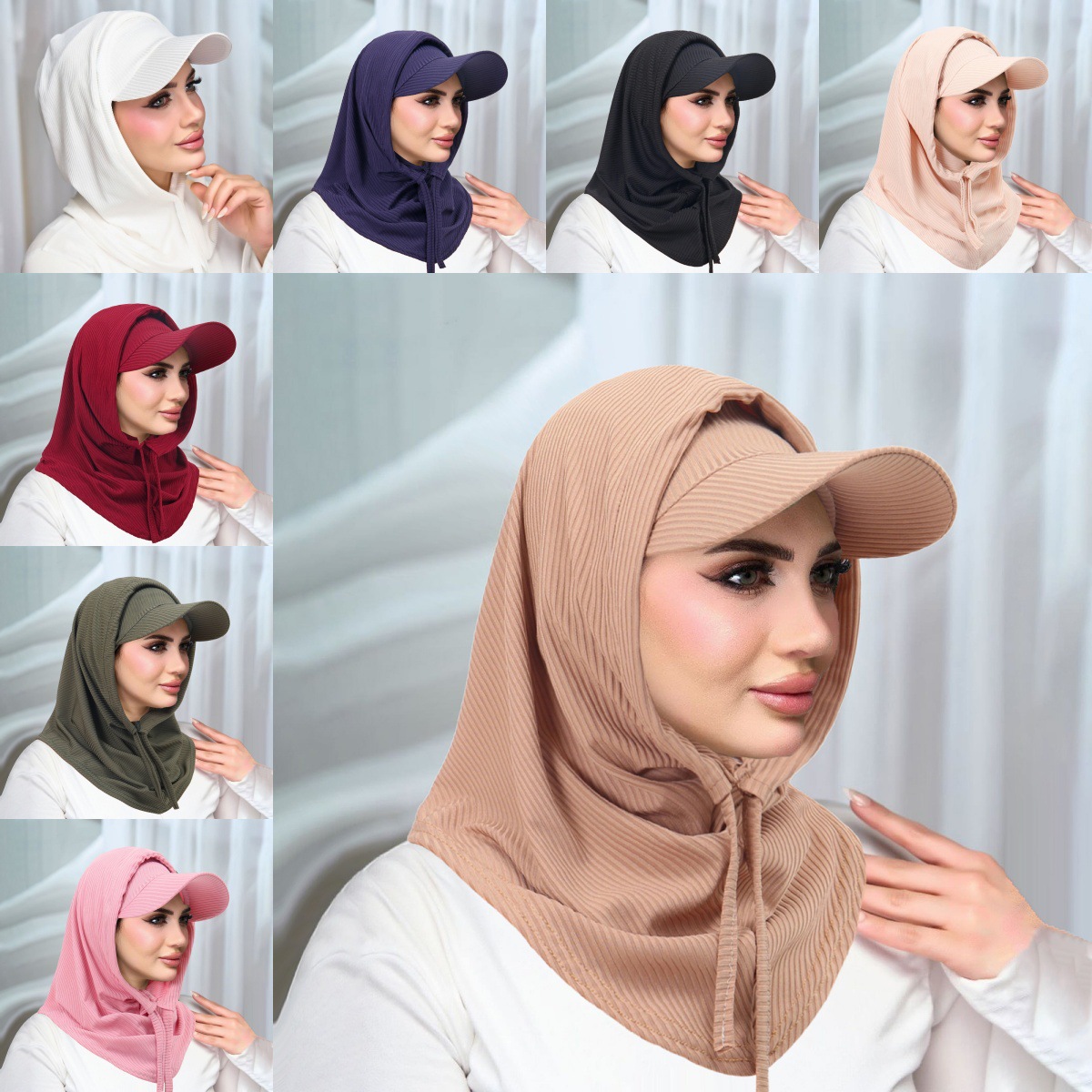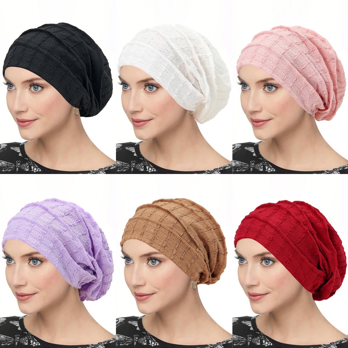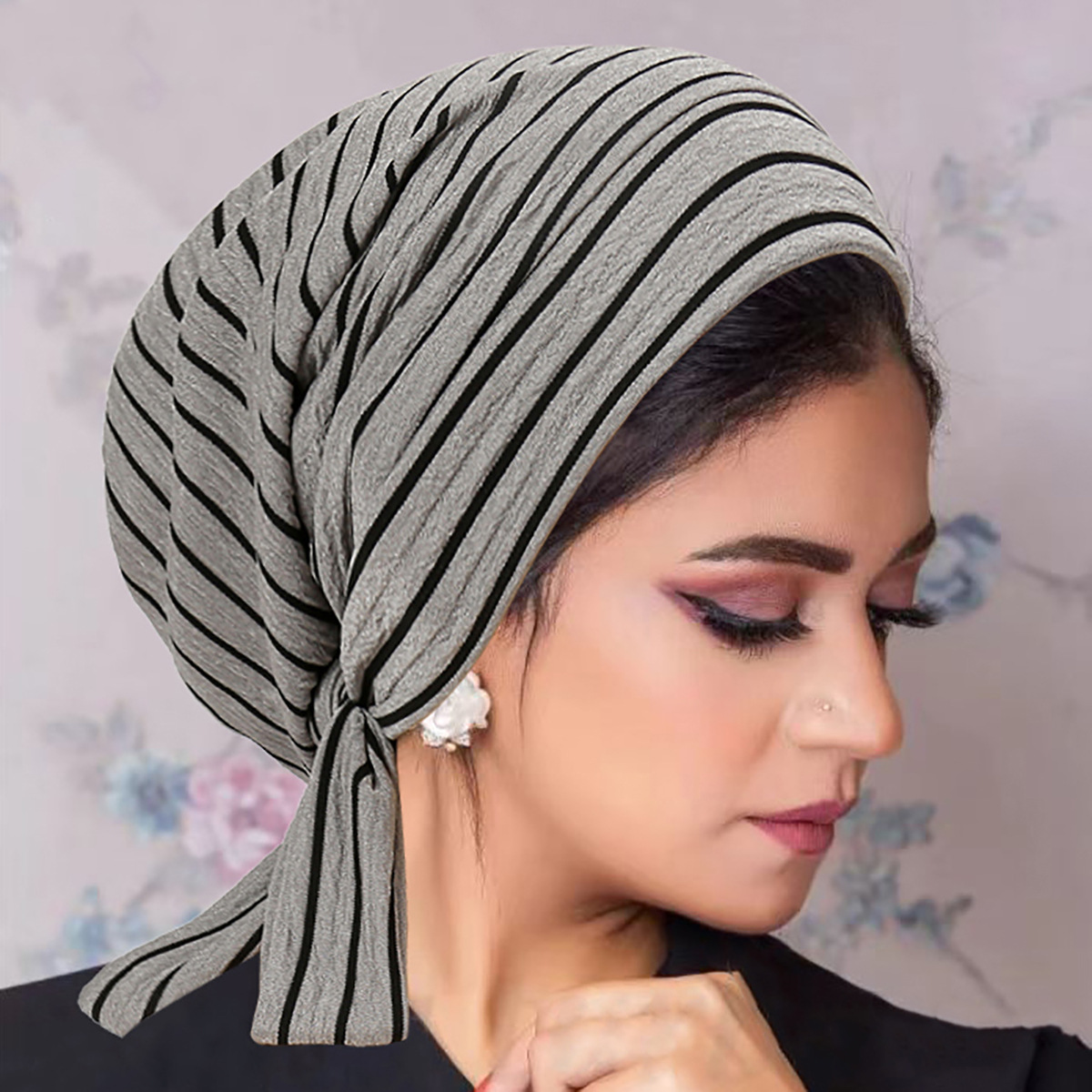 跨境新款珠条纹理褶皱包头帽女士透气舒适头巾帽日常简约搭配
