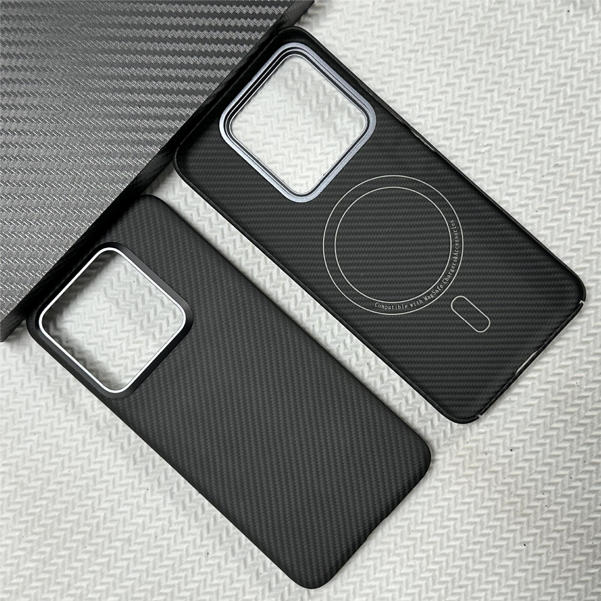 Xiaomi 17ProMax内蔵磁気吸着カーボンファイバー携帯電話ケース、Xiaomi 14uケブラーパターン13保護ケースに適用