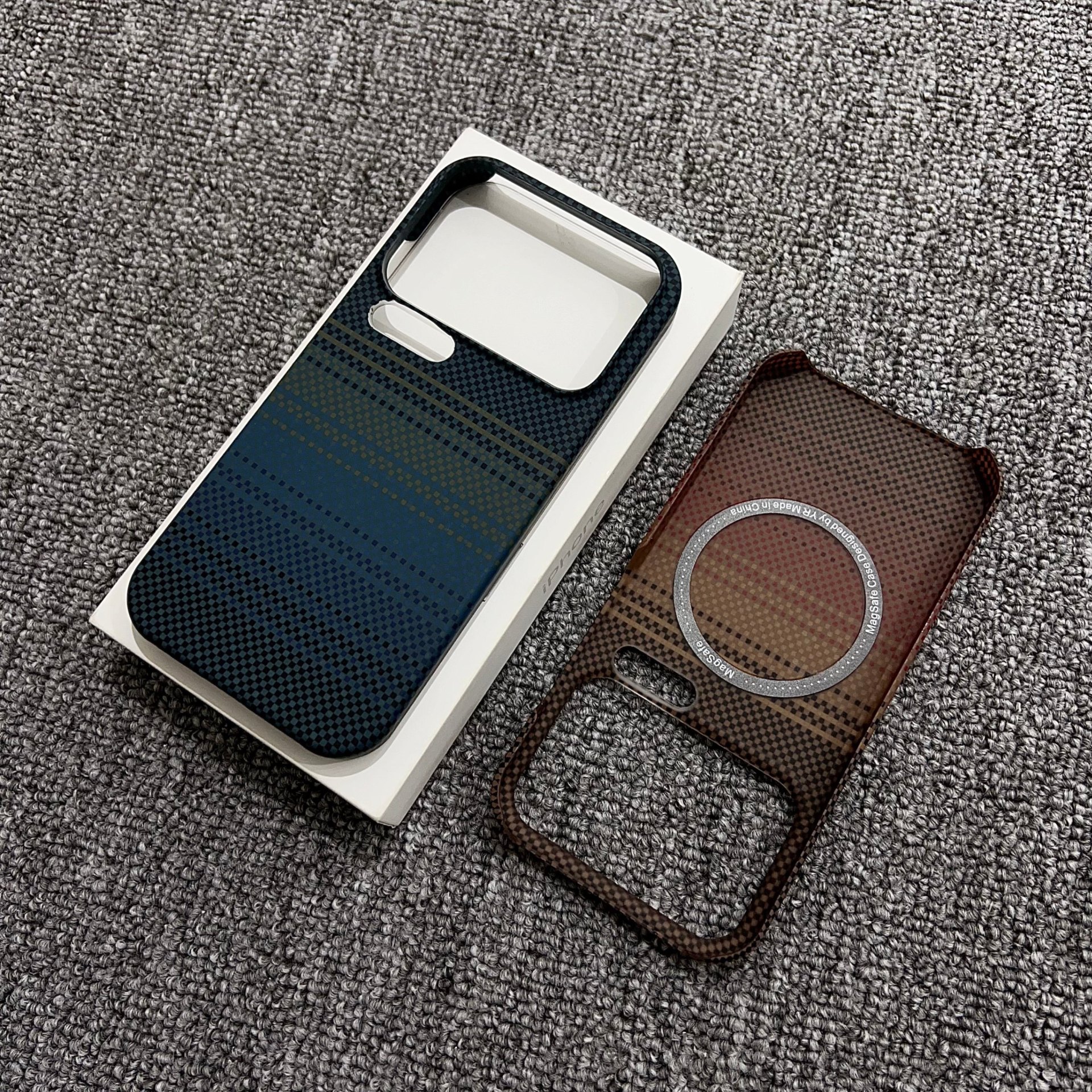 iPhone16Pro用ファッショナブルなケブラ超薄型スマホケース、Apple 16ProMax用アラミド繊維