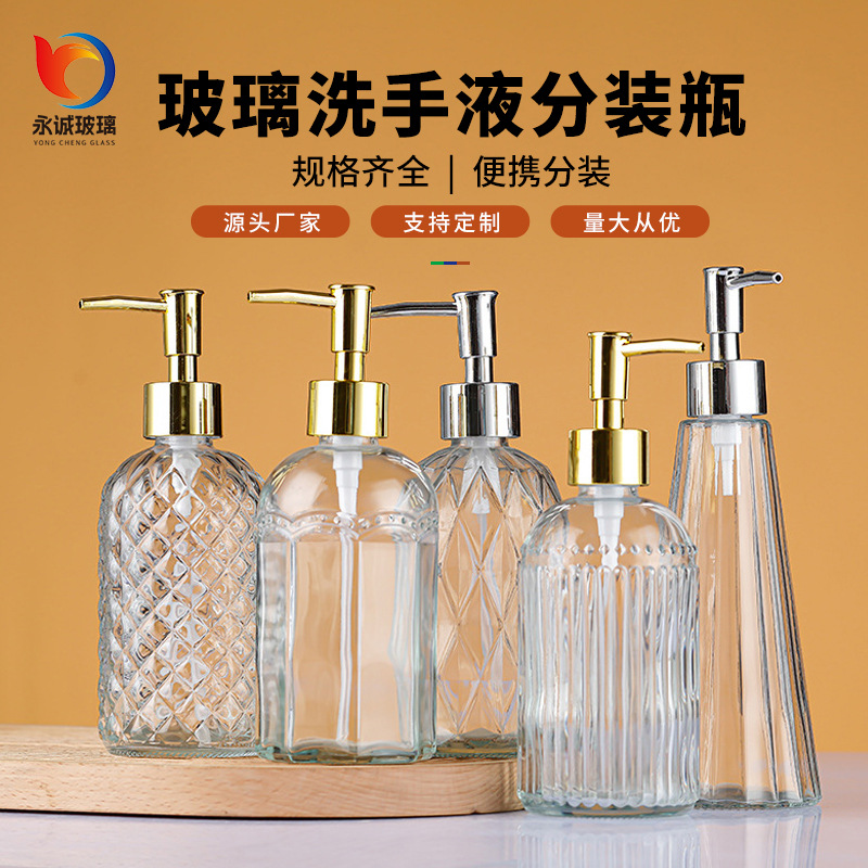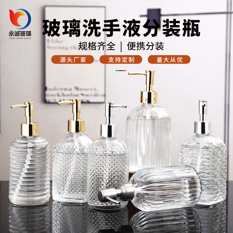透明なガラスの手指消毒剤ボトルプレスソープボトル高価値大容量シャワージェルシャンプーボトル卸売
