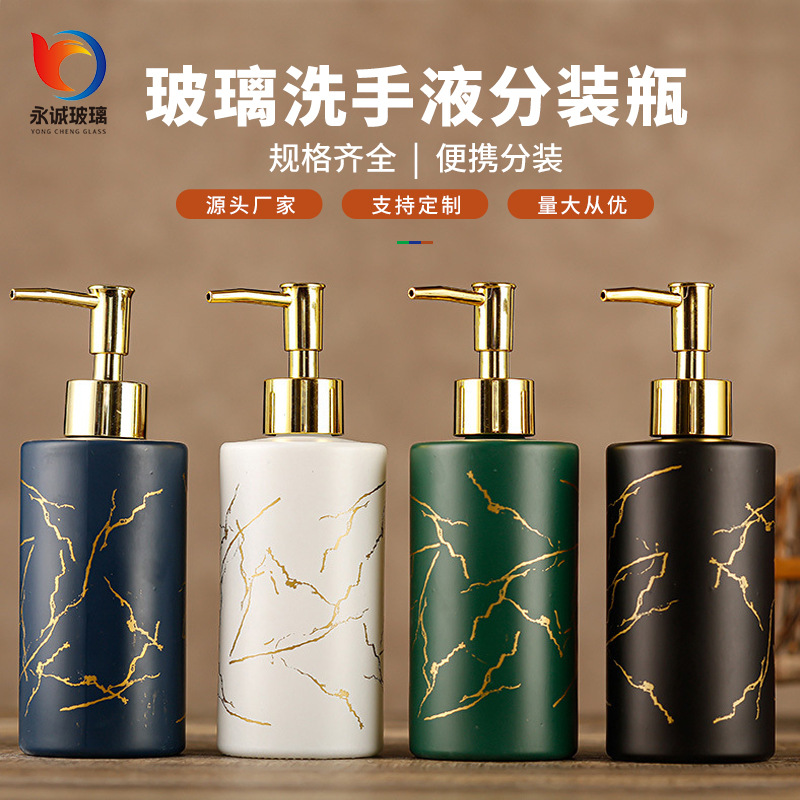 大理石のハンドサニタイザーボトル、遮光ガラスソープボトル、高価値インスタイルシャワージェル、シャンプーボトル