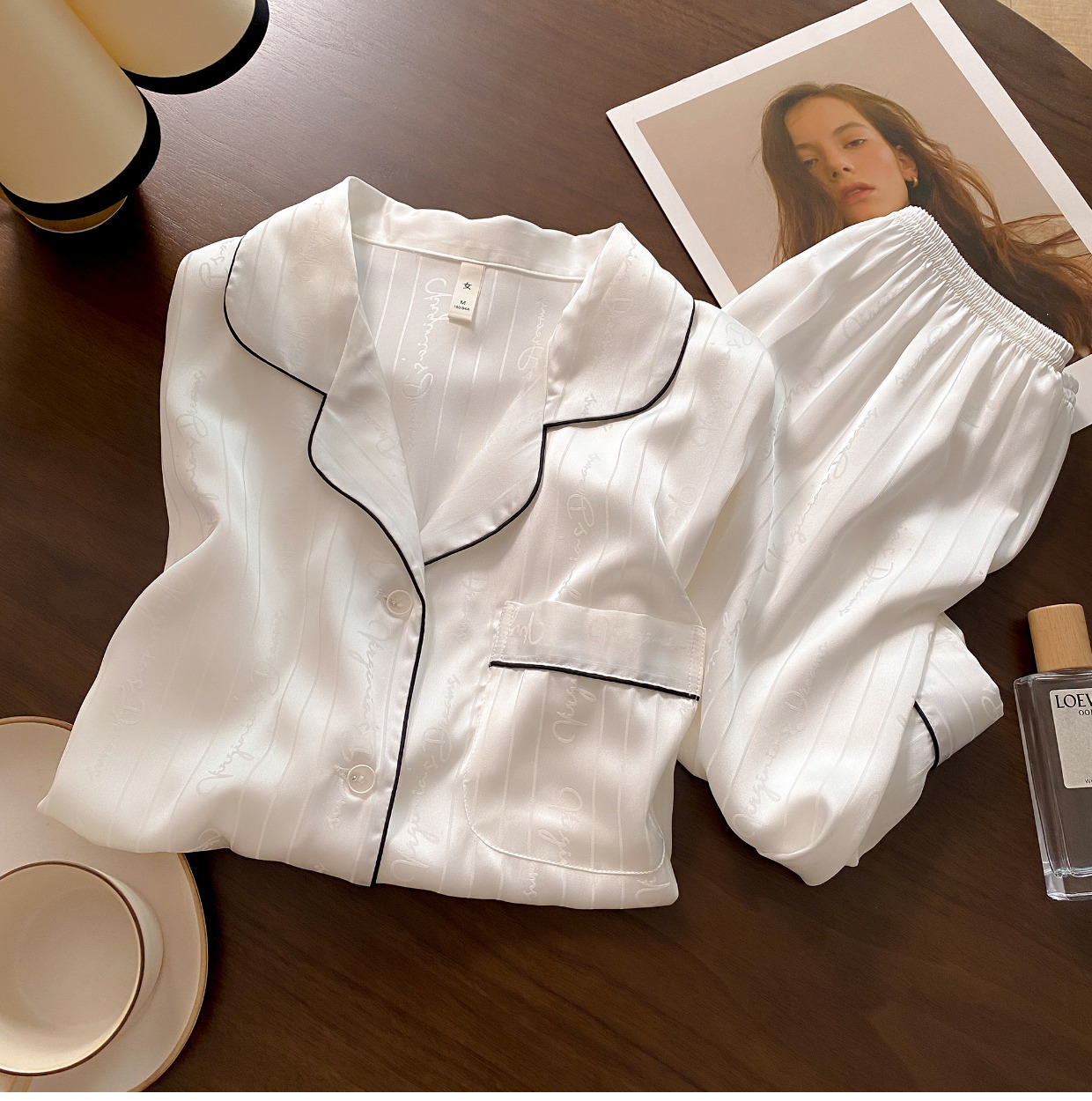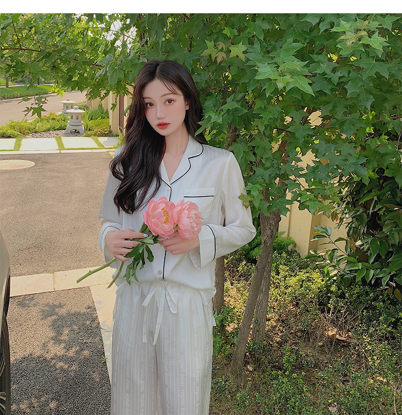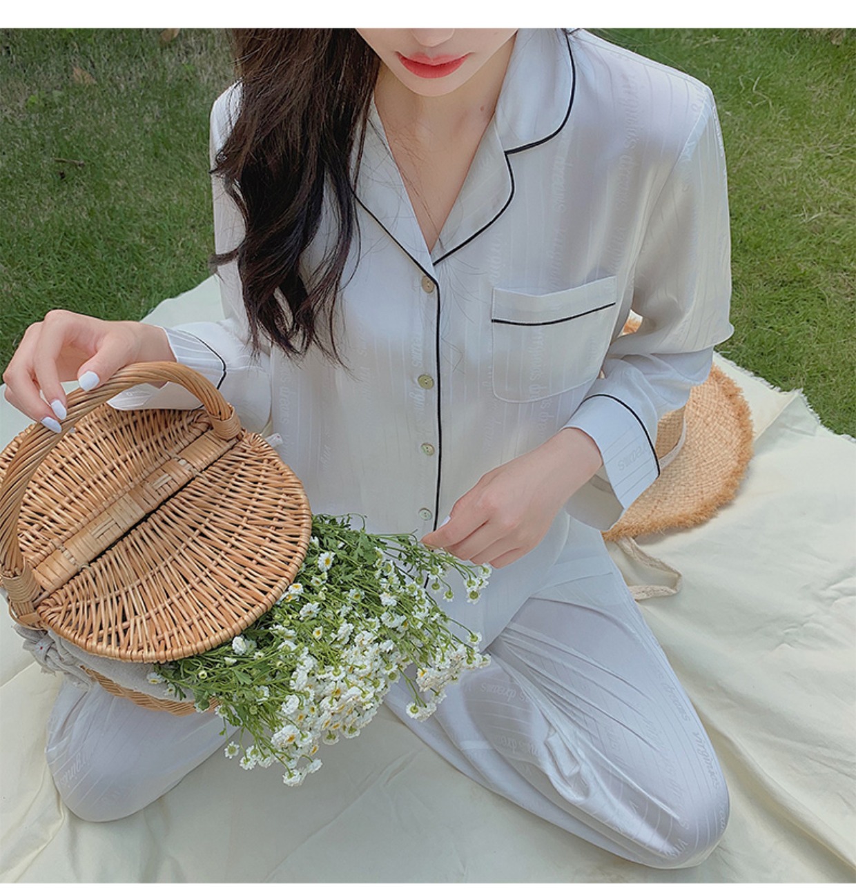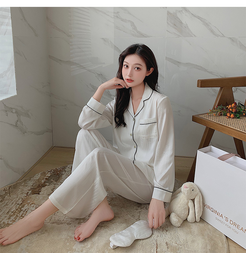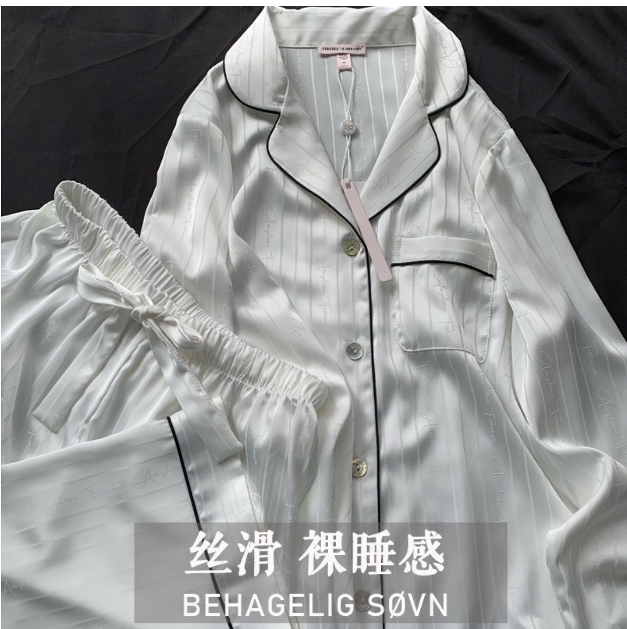 真丝睡衣女款春秋季长袖新款家居服白色感冬薄款桑蚕丝绸套装