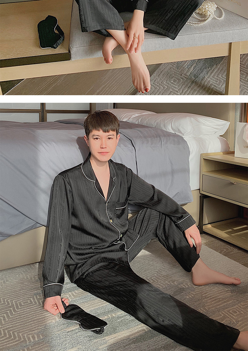 シルクカップルパジャマレディースメンズ長袖感春夏半袖绢糸ホームウェアセット2024タイプA