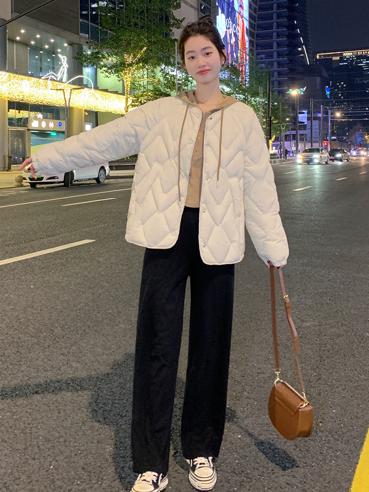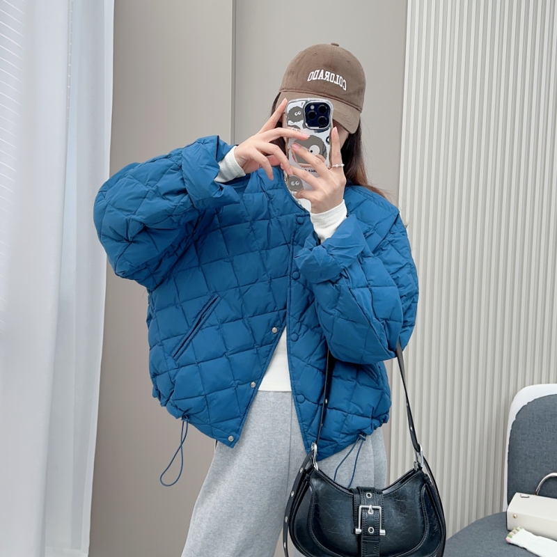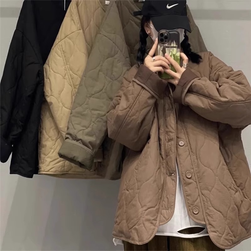 ピックアップ漏れ ~ 日系菱格綿ジャケット女性秋冬ゆったりとした保温薄手ダウン綿服コート