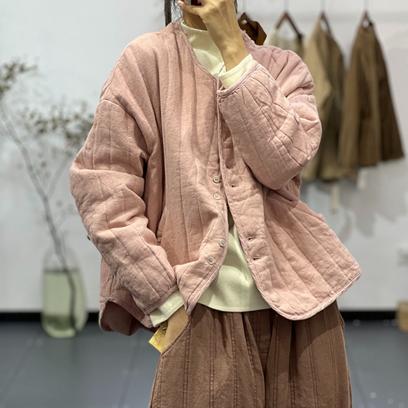 拾い落とし ~ レトロ厚手綿麻コート女性秋冬ゆるいレトロ圧目綿保温綿服綿服