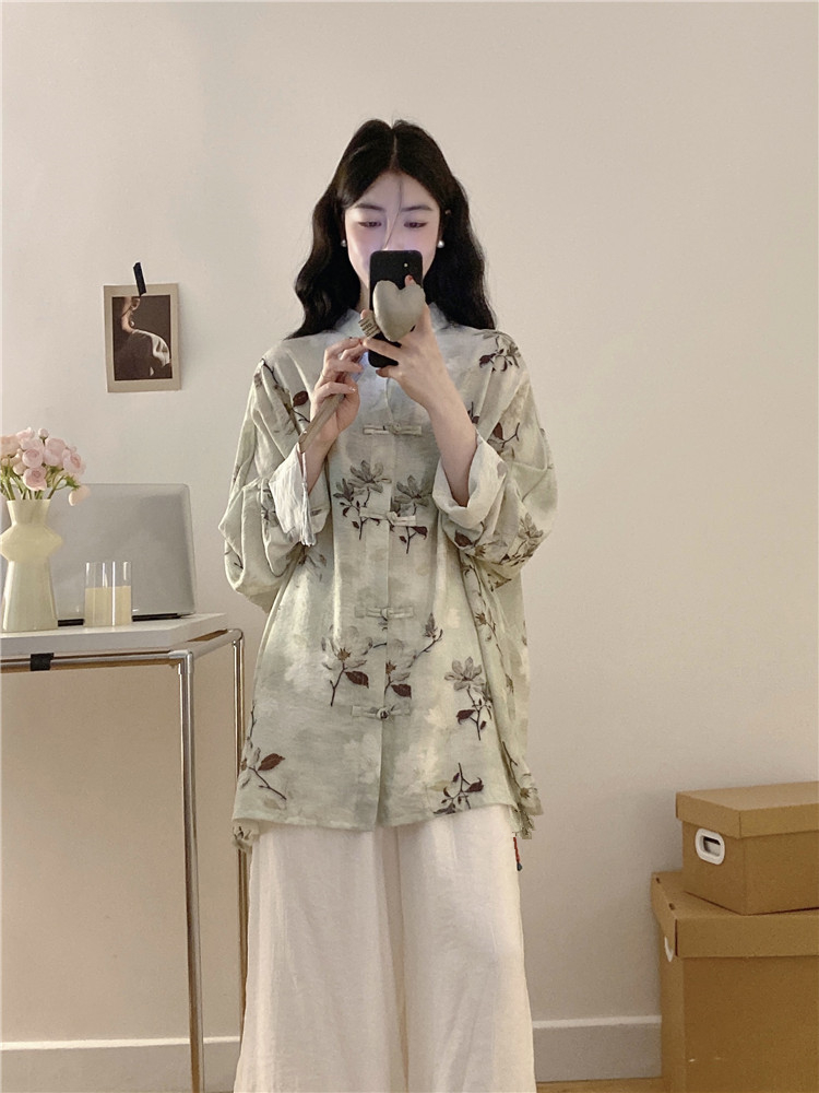 19ムミー【100% 绢糸】新作花柄オーバルシャツ襟长袖セット83011002