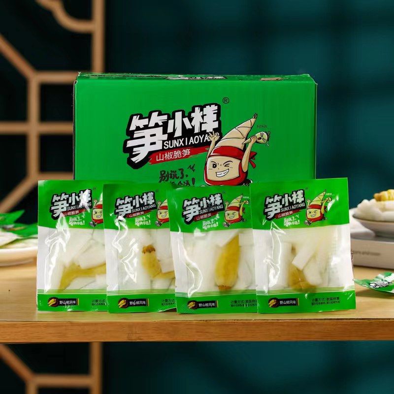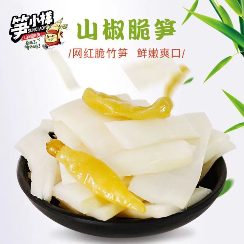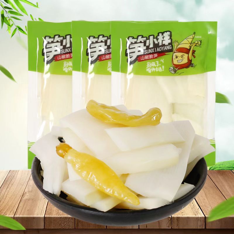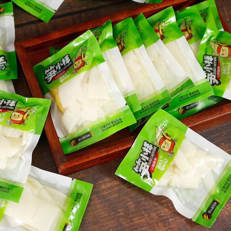 筍の小さい様子のピーマンの新鮮な稲の条の竹の子の切れは袋を開けて山椒の脆い筍のネットの赤いレジャーの間食の箱の卸売りを食べます。