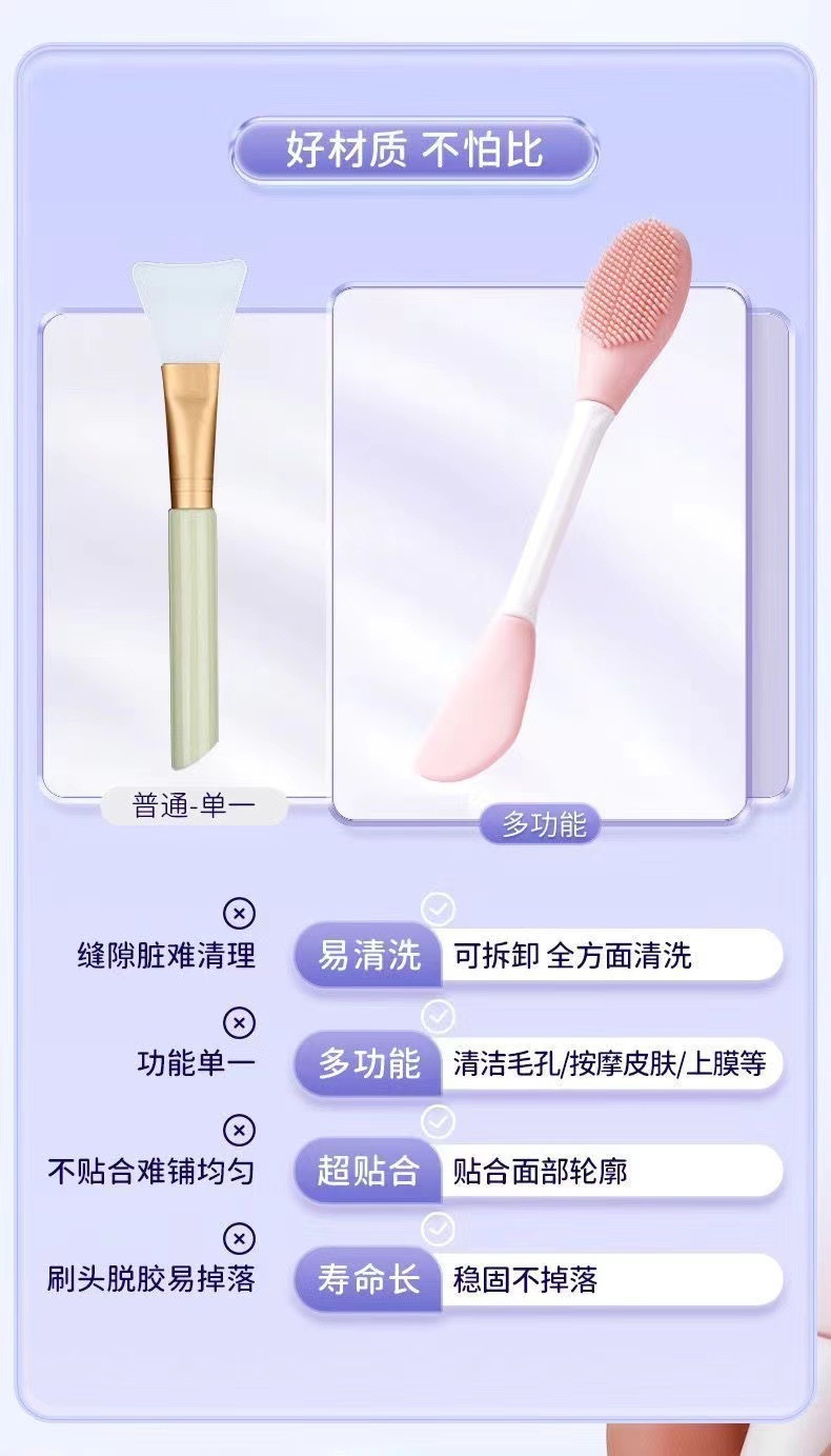单支双头硅胶面膜刷面部清洁剂脸部洁面刷涂抹按摩二合一洗脸刷