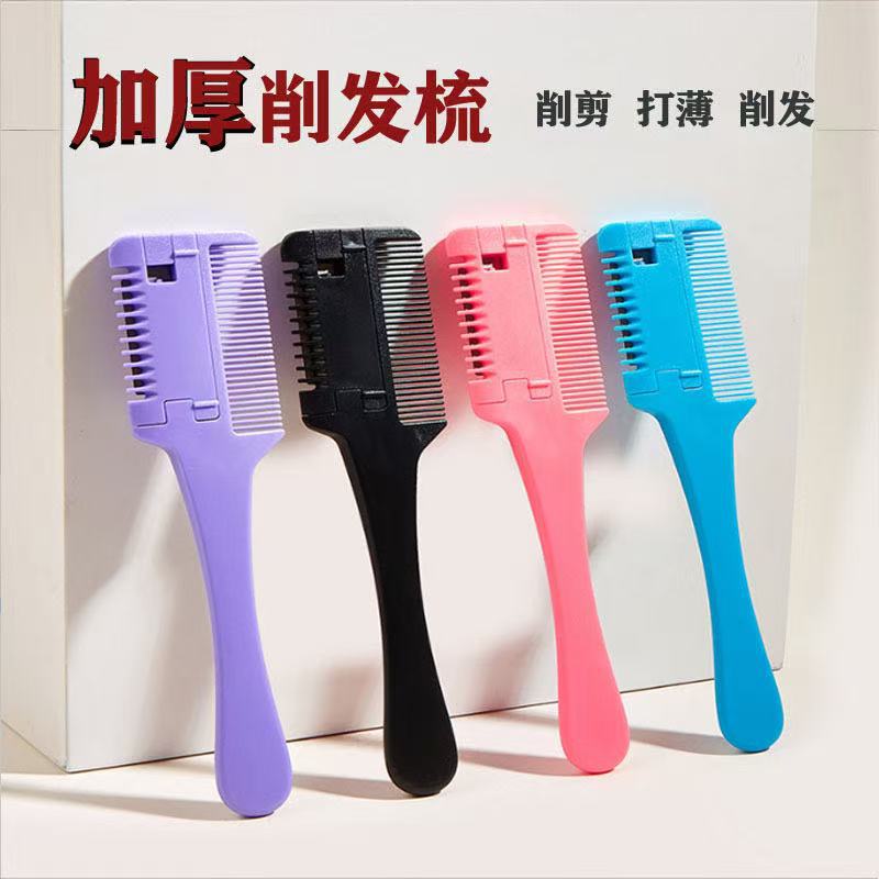 髪を削って櫛をします。家庭用理髪器で薄い前髪をします。