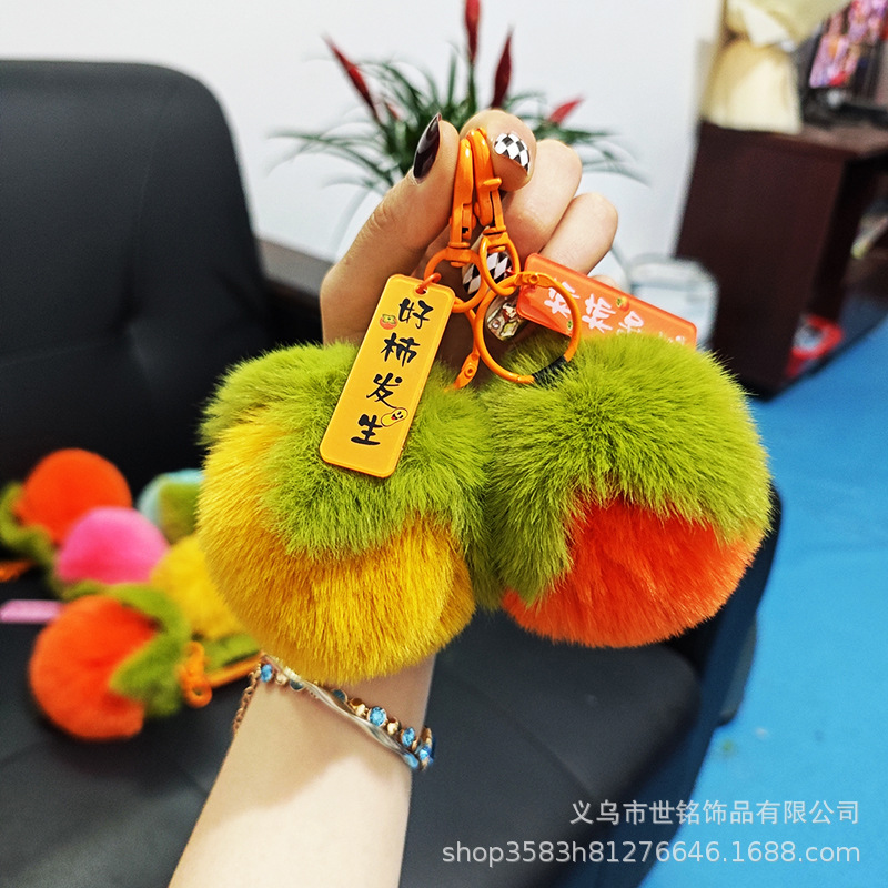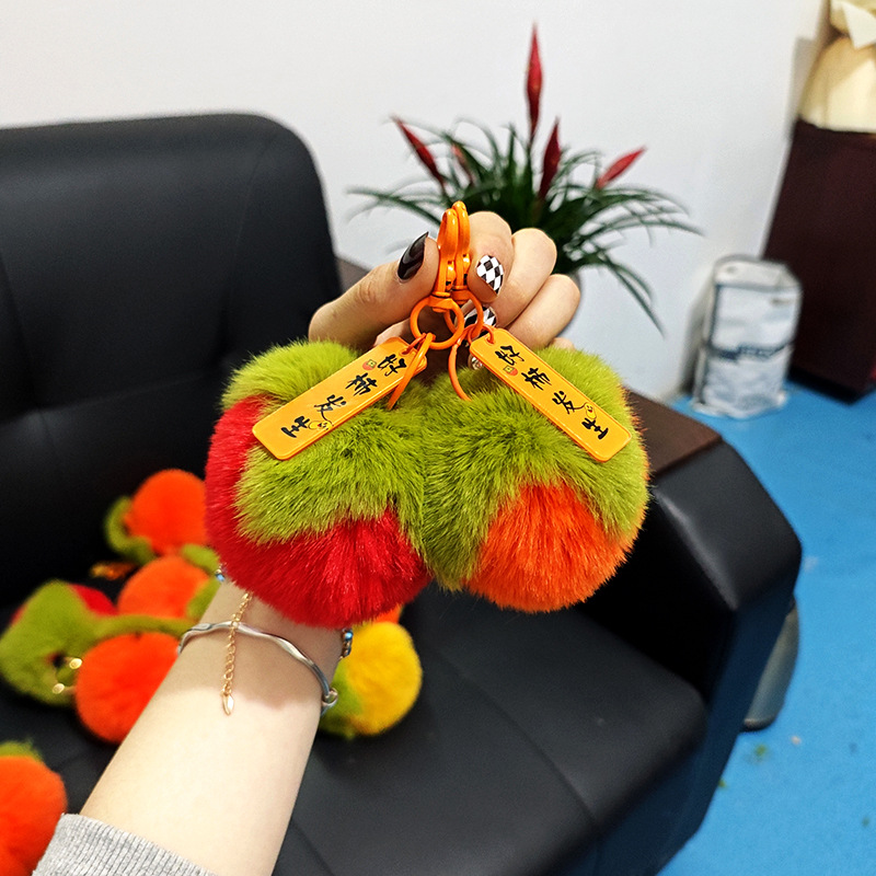 新作のイミテーションレッキスファー柿型キーホルダー飾り 工場卸売 車やバッグ用のぬいぐるみ小物ギフト