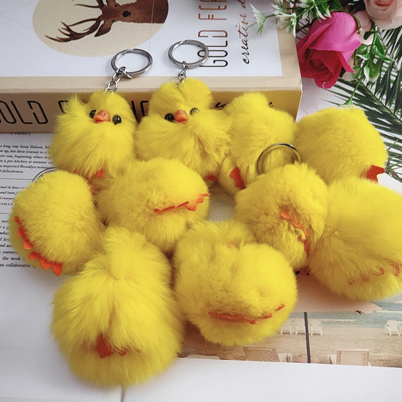 ミニミンクの毛皮小さな黄色いアヒルの車のキーホルダーぶら下げアクセサリーかわいいぬいぐるみ人形スクールバッグペンダントギフト