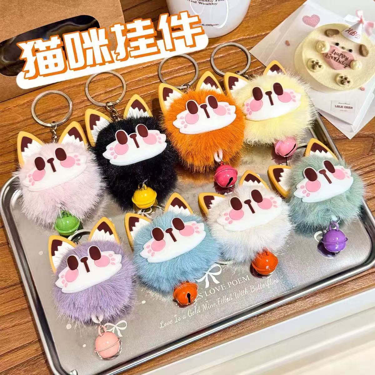 猫咪毛绒铃铛钥匙扣 ins可爱包包挂件公仔玩偶学生书包挂饰小礼品