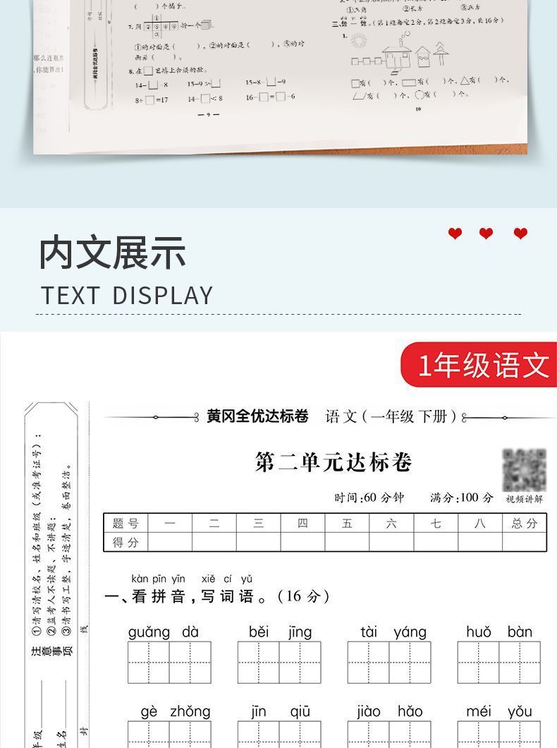 一年生の上巻テストボリュームセットの国語と数学テストボリュームセットのテストボリュームが同期して人教版を練習する