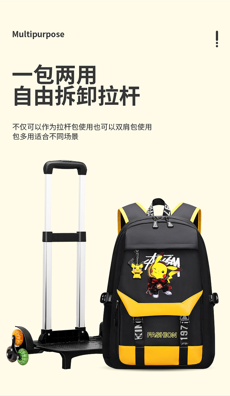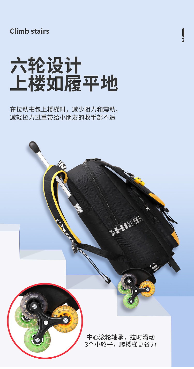 跨境儿童拉杆书包7-12周岁小学生可爬楼1-6年级双肩减负背包耐磨